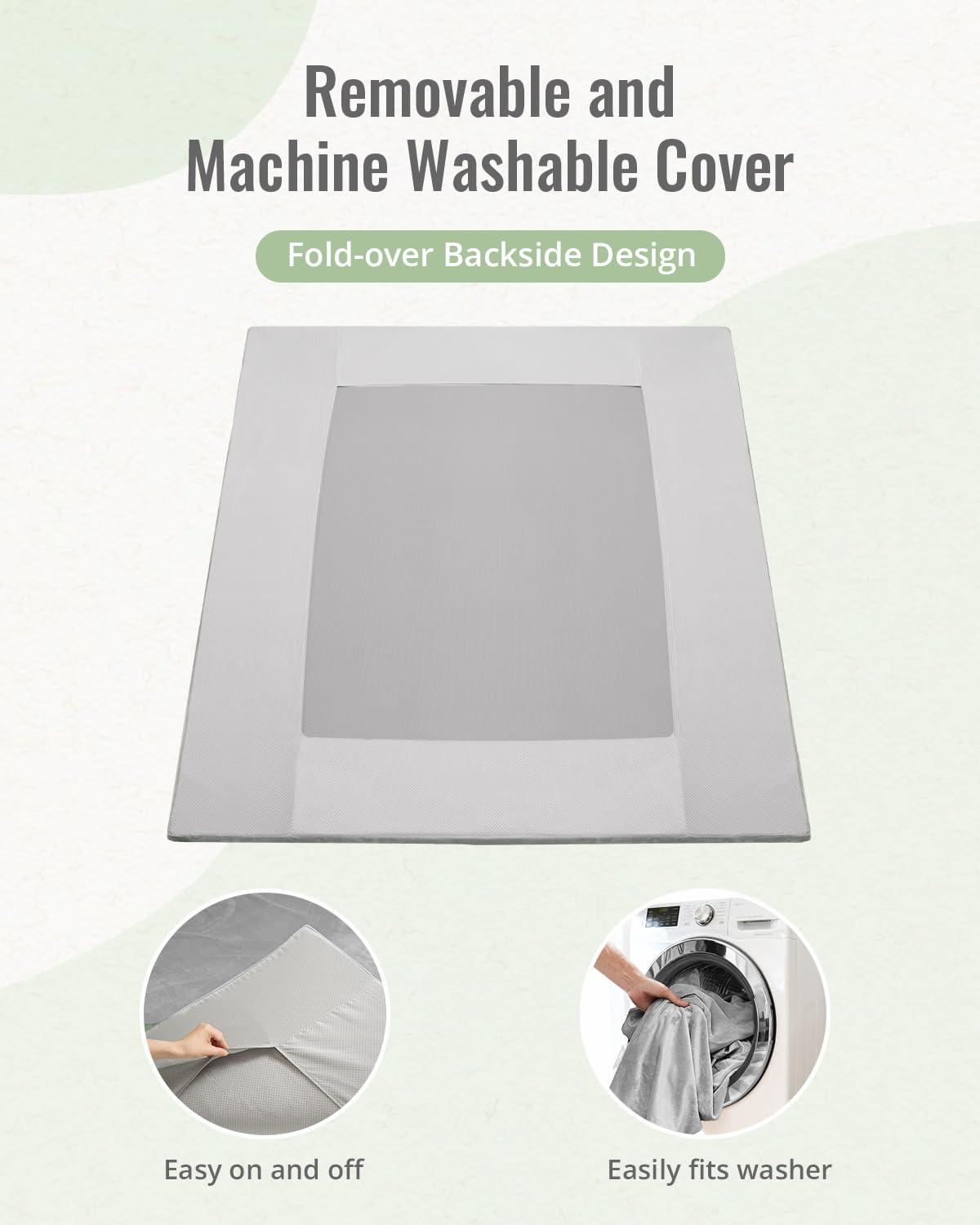 Blissful Diary 1.3″ Thick Baby Play Mat, 71×59 Playpen Mat with Removable & Washable Cover, Ultra Soft Crawling Rug for Floor, Foam Cushion & Non-Slip Backing for Kids, Toddlers, Earth Tone Rainbow(Light Grey)
