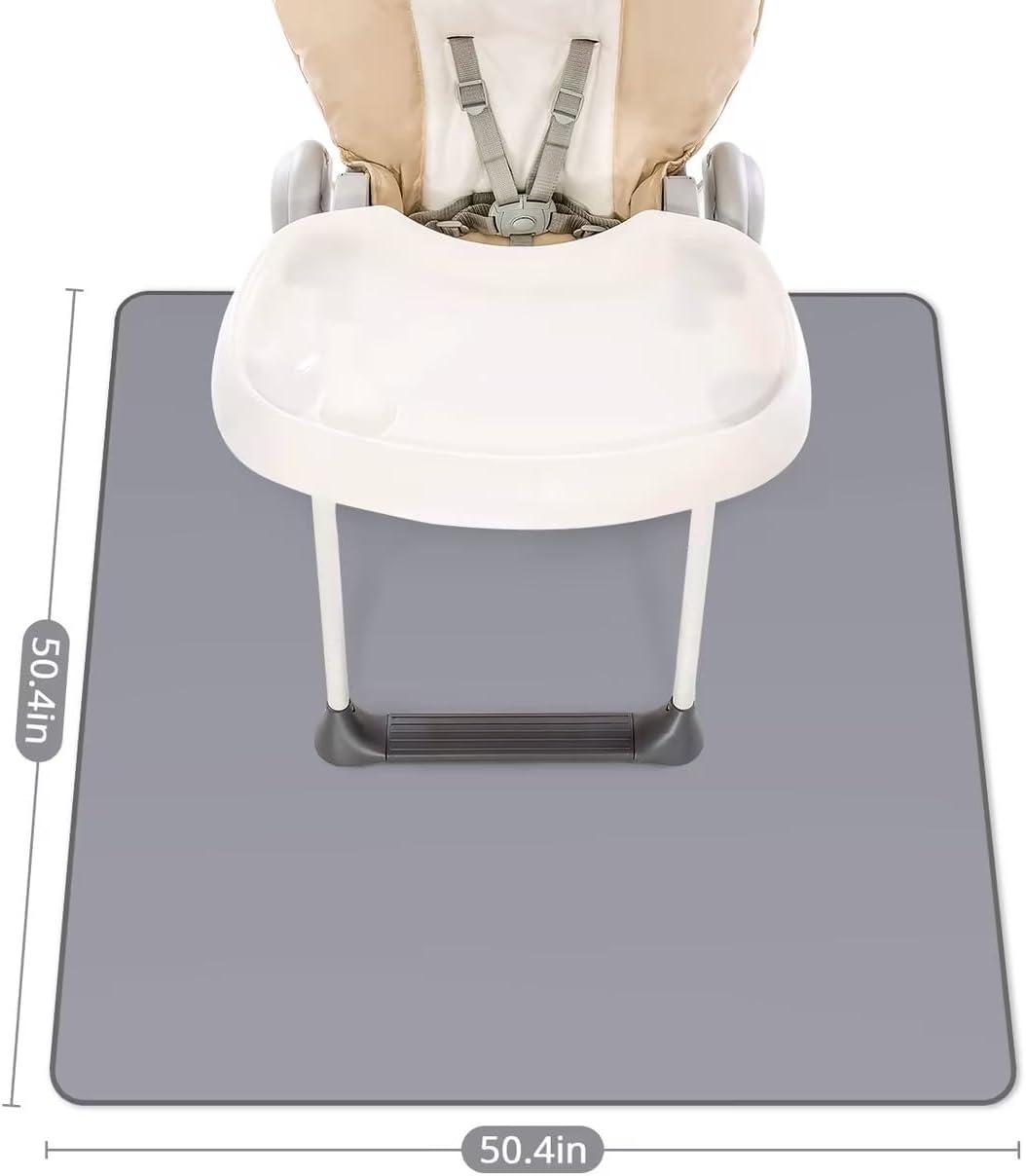 Blissful Diary Baby Splat Mat for Under High Chair, 50.4 x 50.4 Inch Wipeable Splash Mat, Waterproof and Washable, Anti-Slip Floor Protector, Gray(Gray)