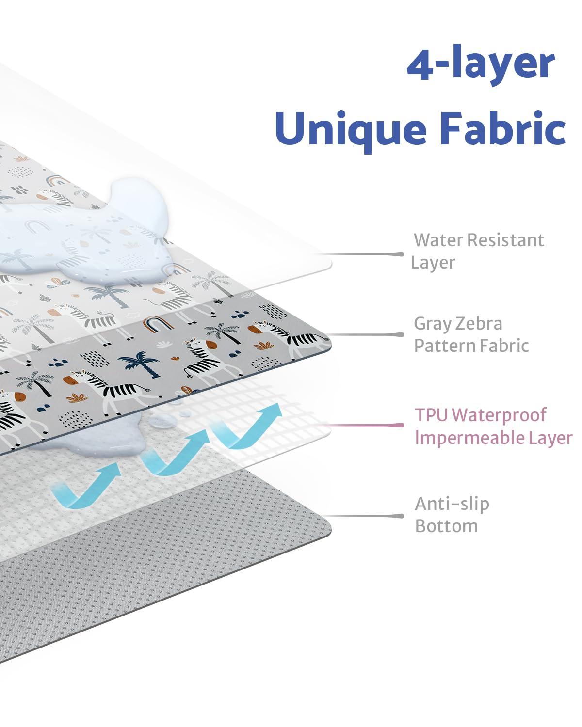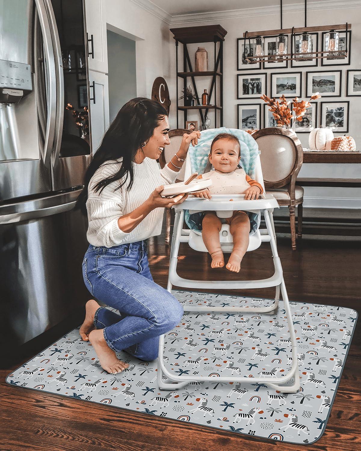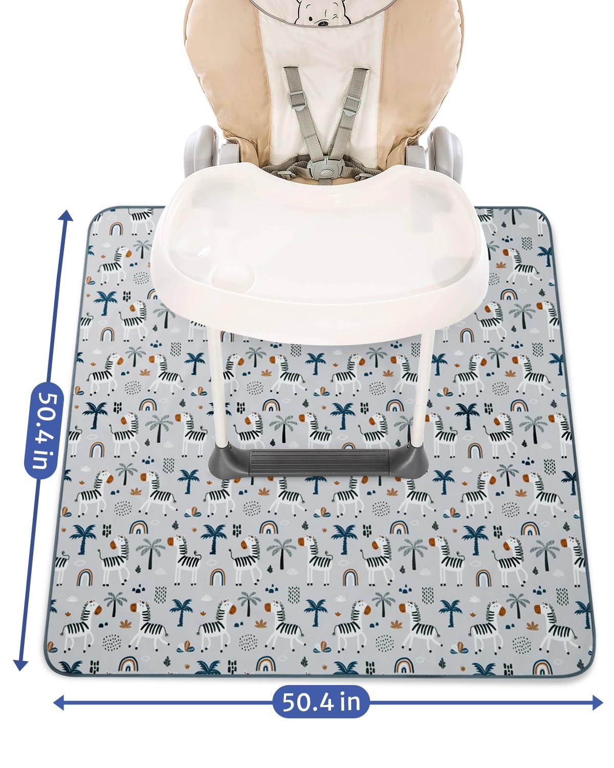 Blissful Diary Baby Splat Mat for Under High Chair, 50.4 x 50.4 Inch Wipeable Splash Mat, Waterproof and Washable, Anti-Slip Floor Protector, Slate Blue(Gray Zebra)