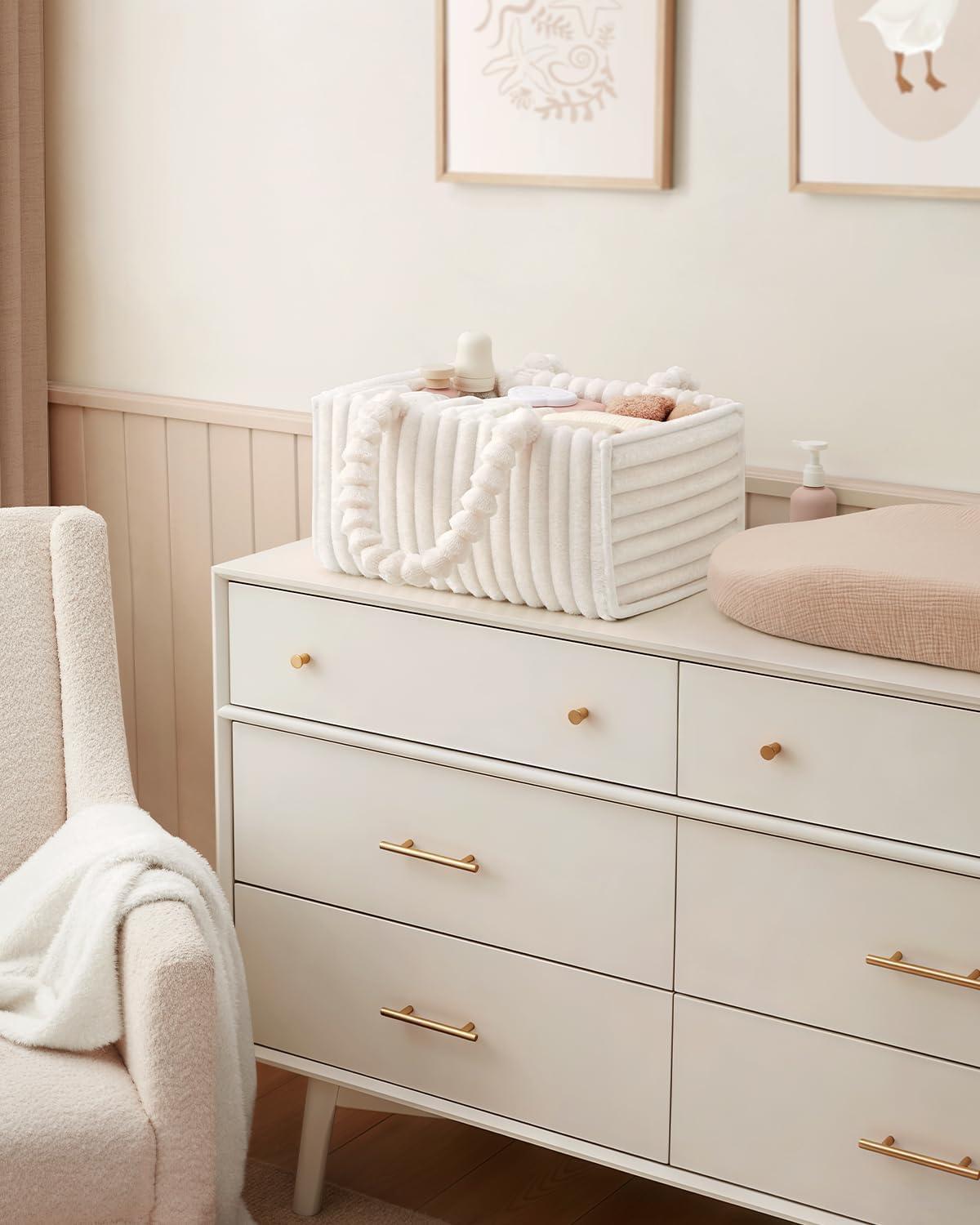Baby Essentials Organized with Ease – This roomy diaper caddy (15″x10″x7″) offers ample space to keep diapers, wipes, bottles, toys, and more in one convenient place—making nursery organization simple.