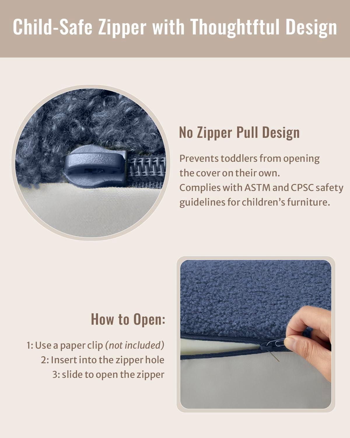 High Density Foam and Washable Cover: High-density memory foam provides sturdy support for the kids sofa. The cover is made of soft, breathable fabric that is skin-friendly and comfortable, easy to remove and machine washable