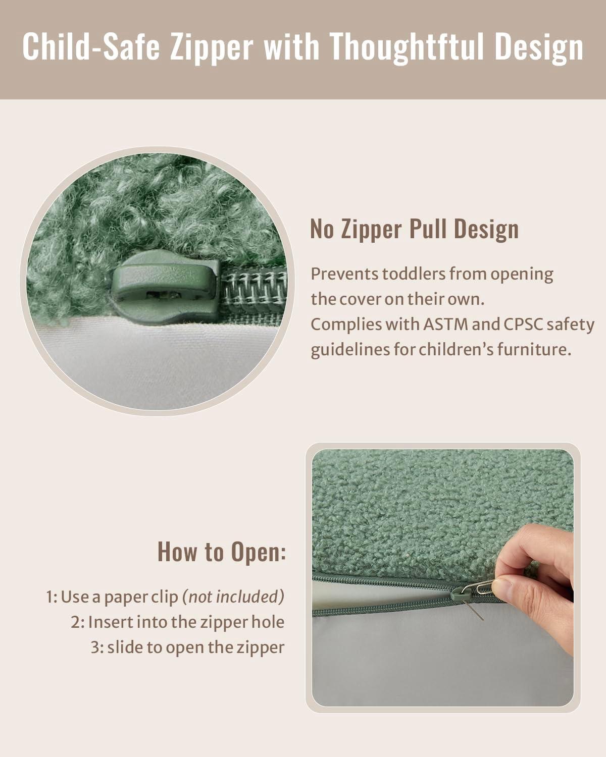 High Density Foam and Washable Cover: High-density memory foam provides sturdy support for the kids sofa. The cover is made of soft, breathable fabric that is skin-friendly and comfortable, easy to remove and machine washable