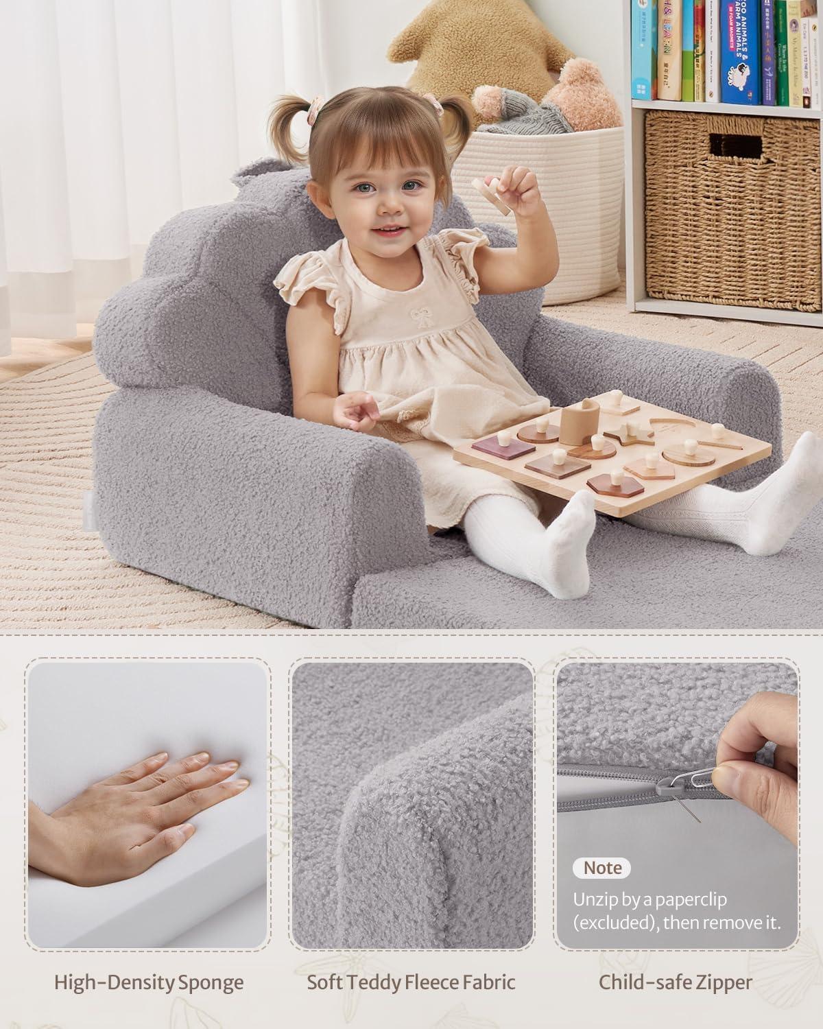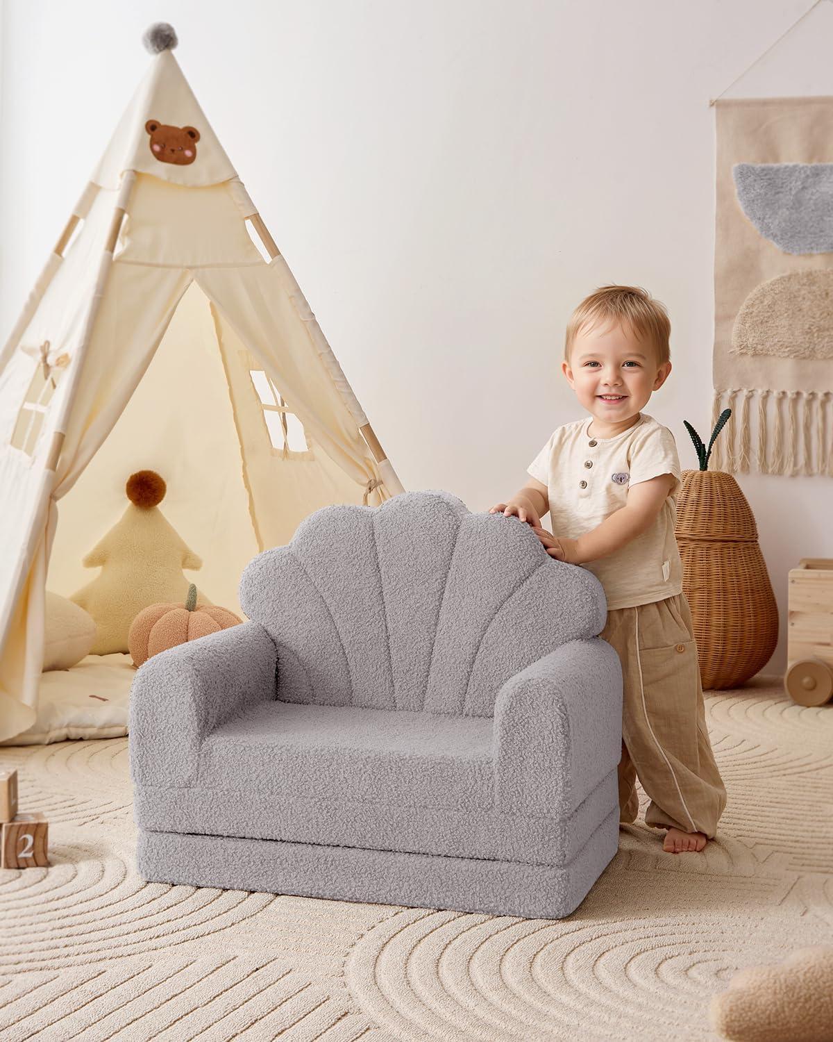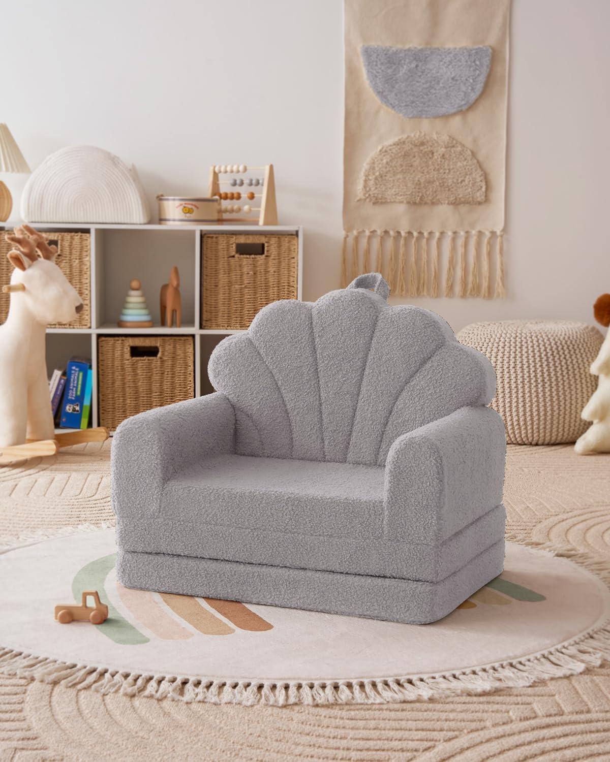 Kids Couch, 2-in-1 Soft Toddler Couch Fold Out, Toddler Chair Comfy, Convertible Sofa to Lounger, Kids Furniture for Playroom, Gift for Birthday, Children's Day