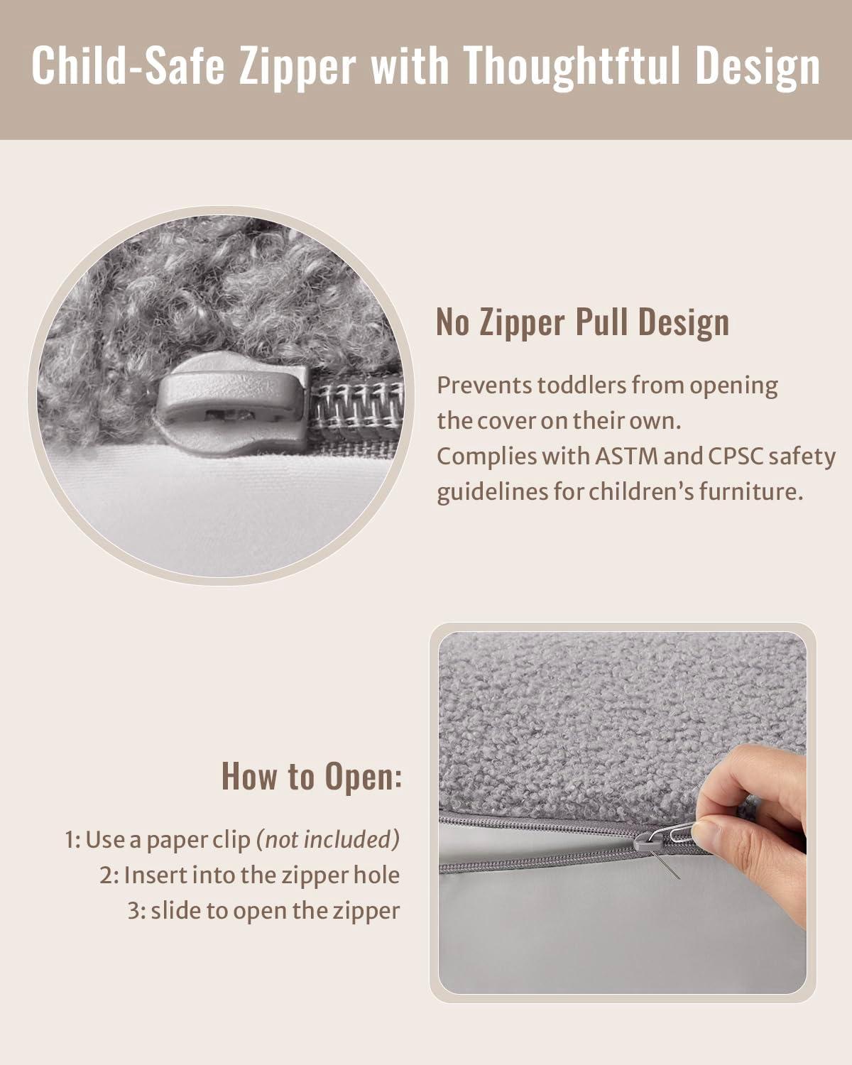 High Density Foam and Washable Cover: High-density memory foam provides sturdy support for the kids sofa. The cover is made of soft, breathable fabric that is skin-friendly and comfortable, easy to remove and machine washable