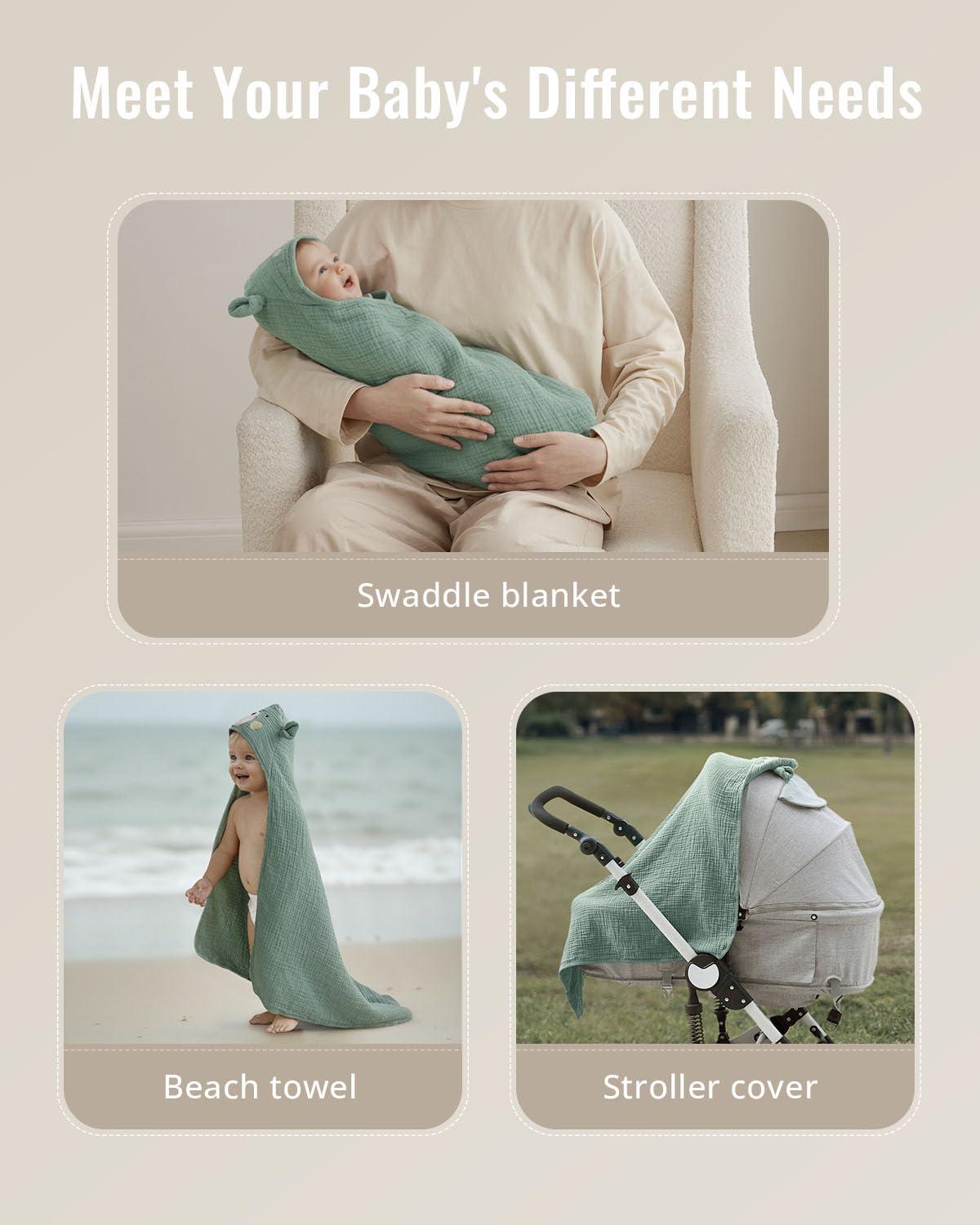Multi-Use Baby Essential for Everyday Needs: Not just a baby bath towel! It doubles as a swaddle blanket, beach towel, or stroller cover. Versatile and practical to meet all your baby's needs in a tub, at the pool or beach