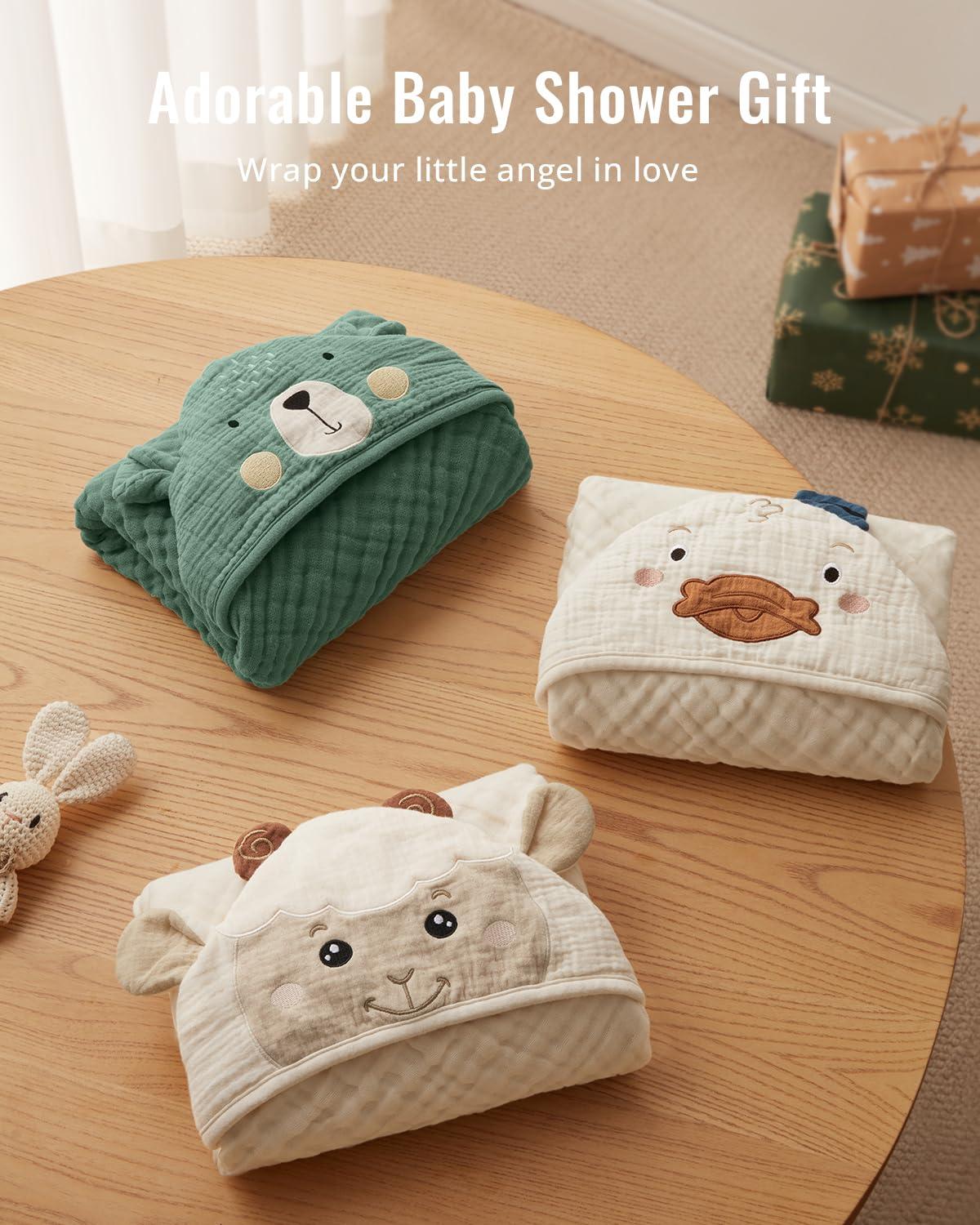Super Soft and Absorbent: Crafted with premium muslin cotton and a cute animal hood, this unique baby bath towel is softer than regular cotton and absorbs water in just seconds, keeping your little one warm, dry and happy after bath