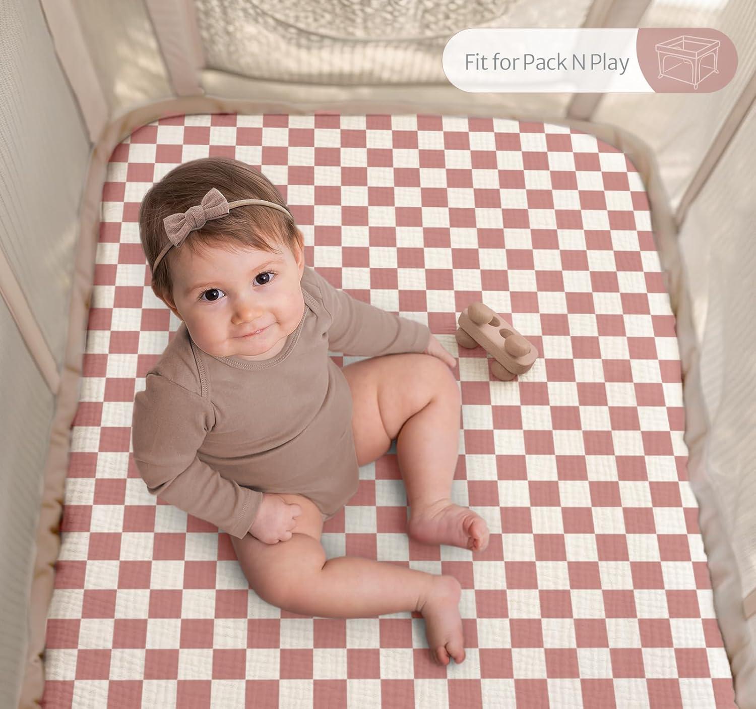Nice Baby Essentials: Chic Checkerboard Nursery Style! These versatile muslin crib sheets feature the on-trend checkered pattern, perfectly matching any nursery decor and making a delightful gift for boys or girls