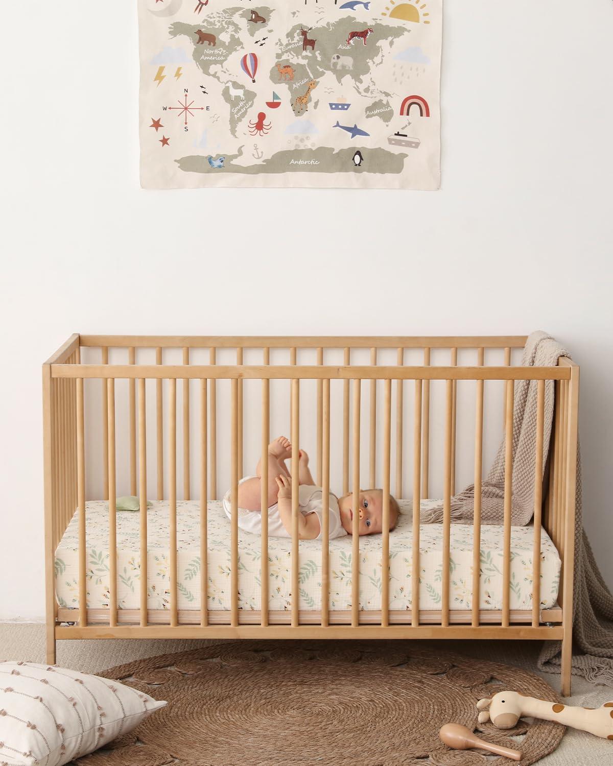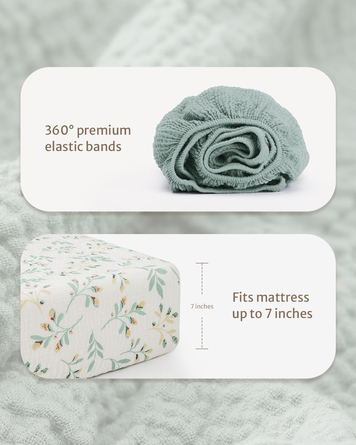 Premiun Muslin Cotton: Made from muslin cotton, our crib sheets are cozy and breathable in all seasons, making babies a better sleep. Plus, the soft muslin material is friendly for your baby's delicate skin