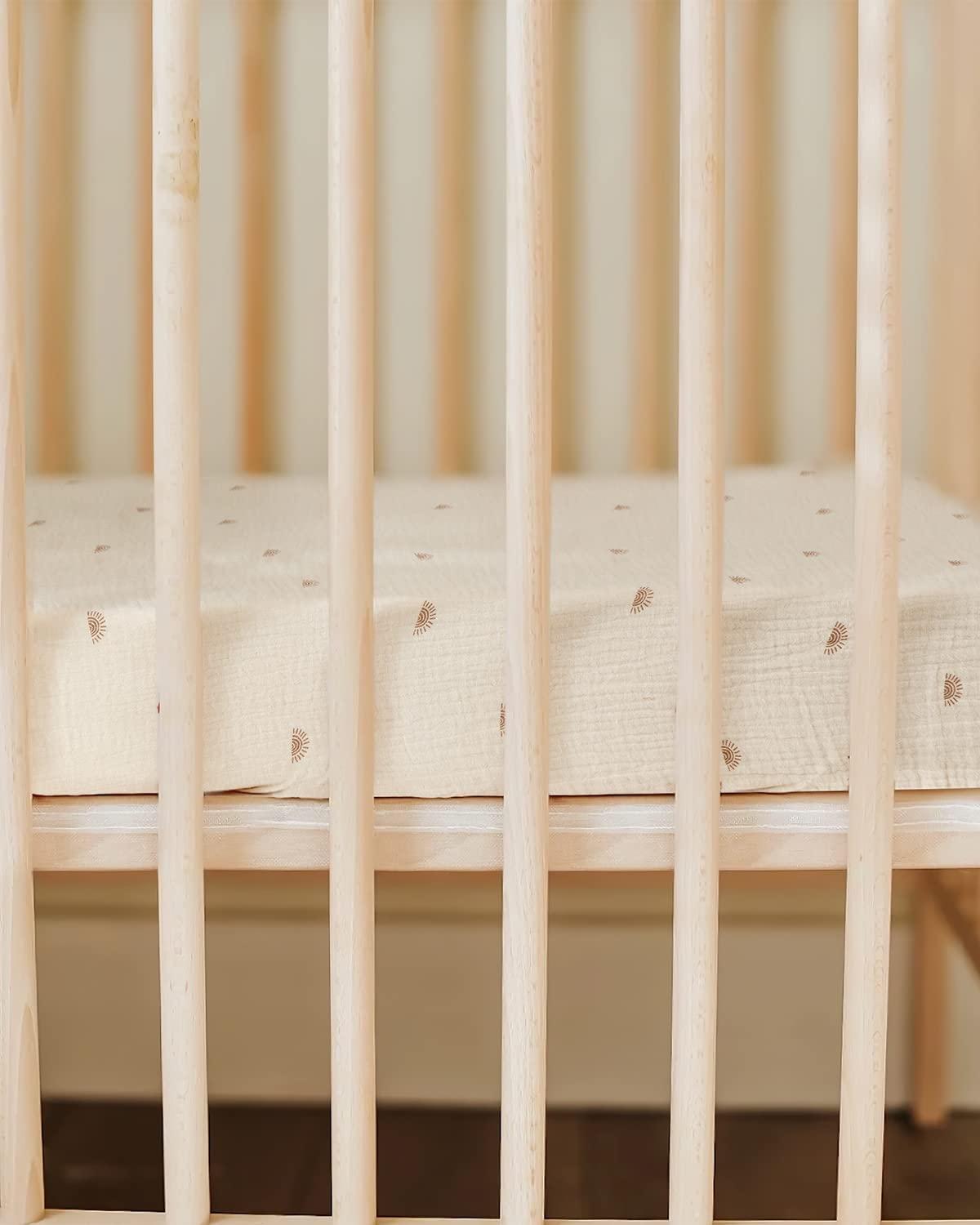 Premiun Muslin Cotton: Made from muslin cotton, our crib sheets are cozy and breathable in all seasons, making babies a better sleep. Plus, the soft muslin material is friendly for your baby's delicate skin