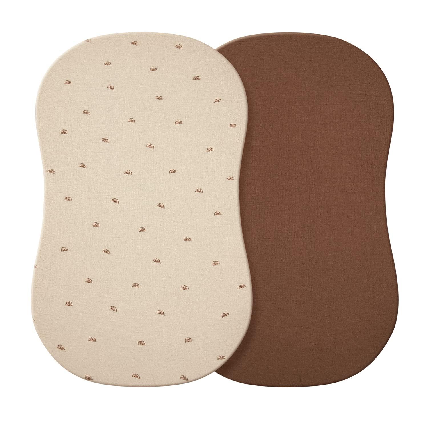 Blissful Diary Muslin Crib Sheets for Girl Boy, Boho Neutral Soft Cotton Baby Sheet for 52”x28” Standard Crib Mattress, 2 Pack(Retro Yellow&Beige)(Cream & Pink)