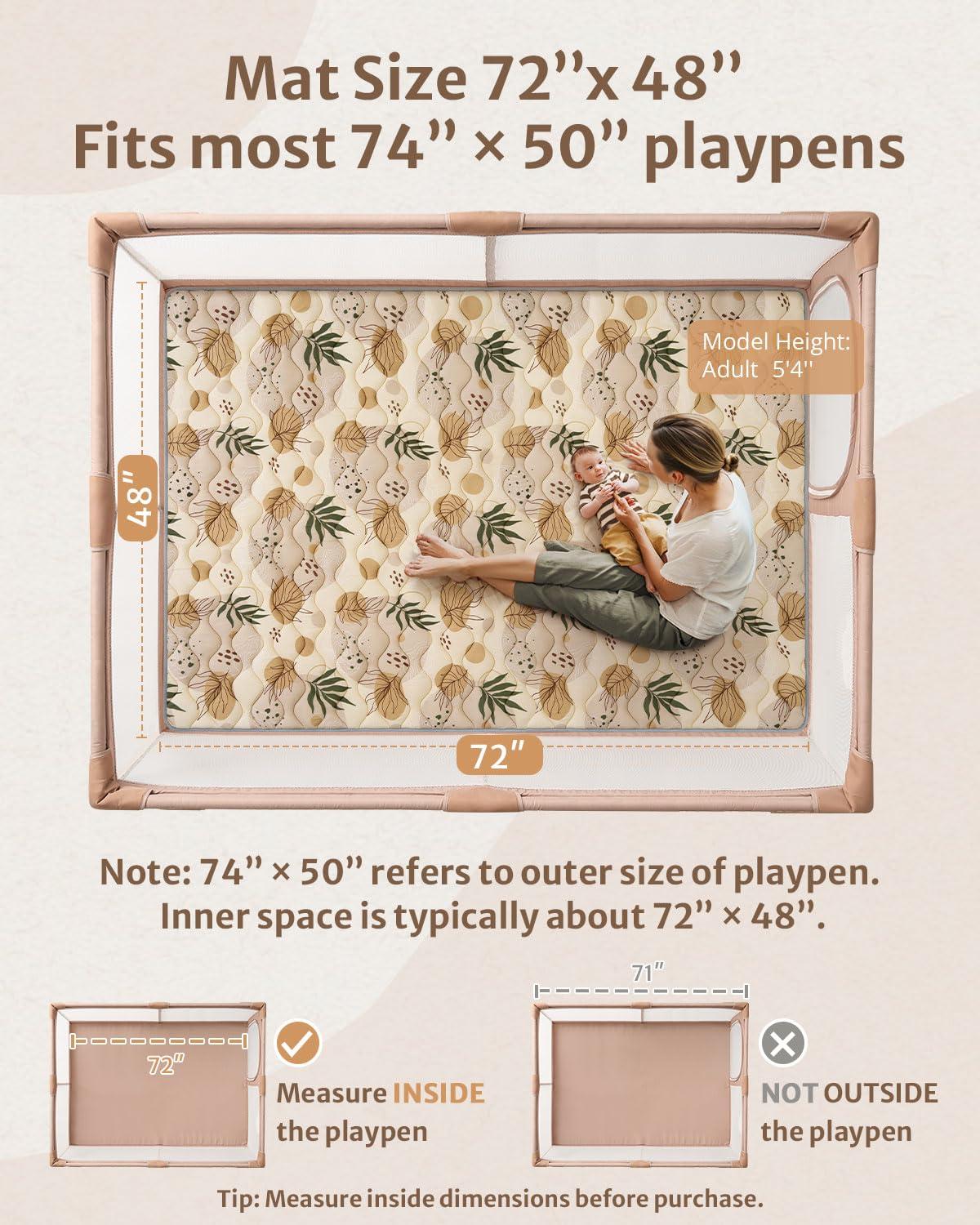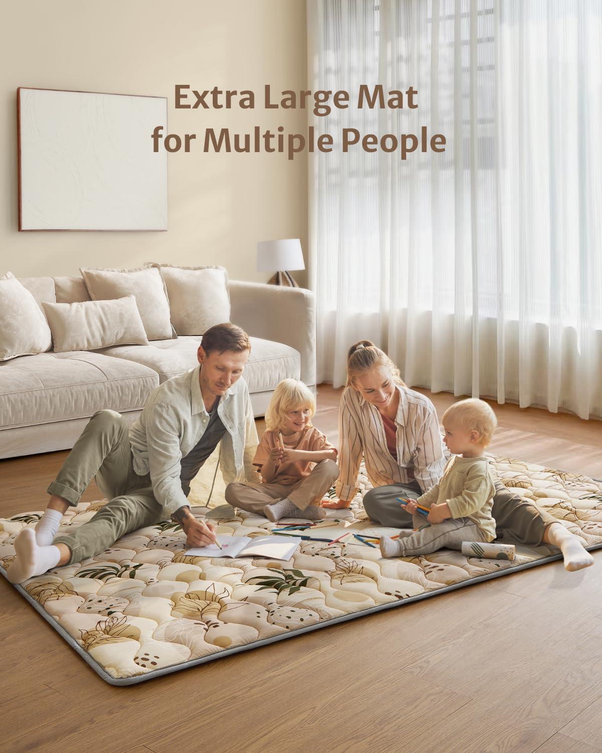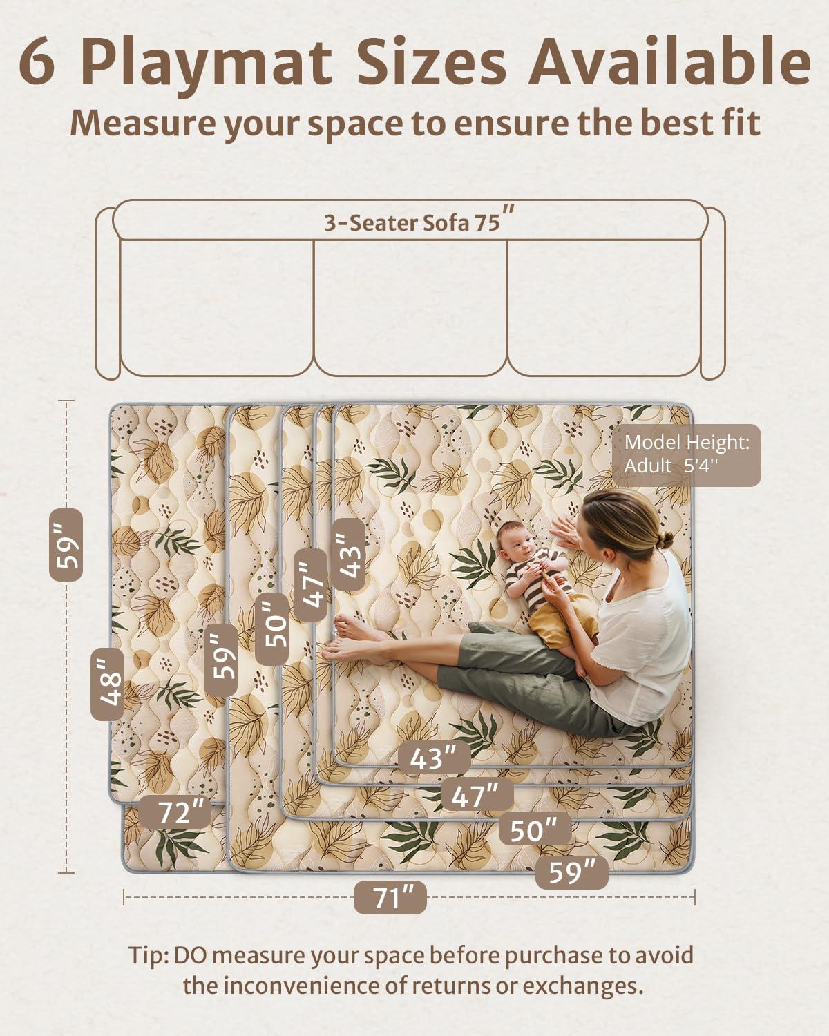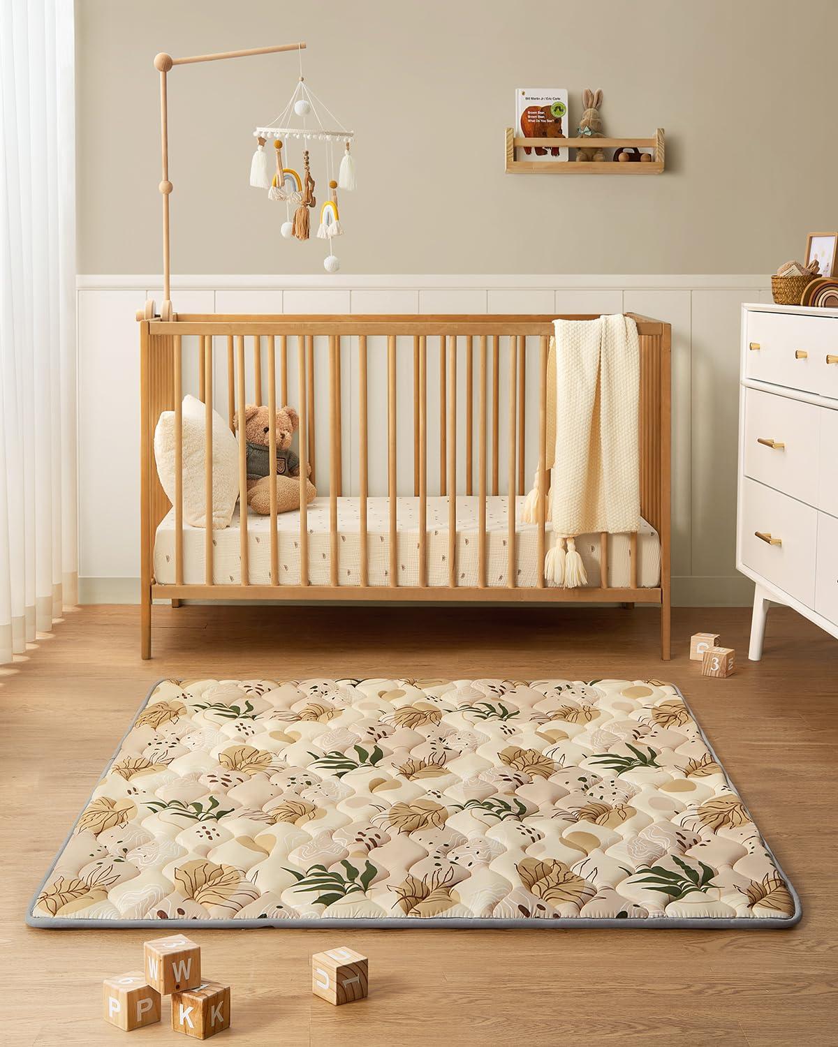 Blissful Diary Portable Baby Play Mats for Floor, Thicker Cushioned Foldable Baby Crawling Mat for Indoor Outdoor, Modern Abstract 43″ X 43″(Earth Tones)