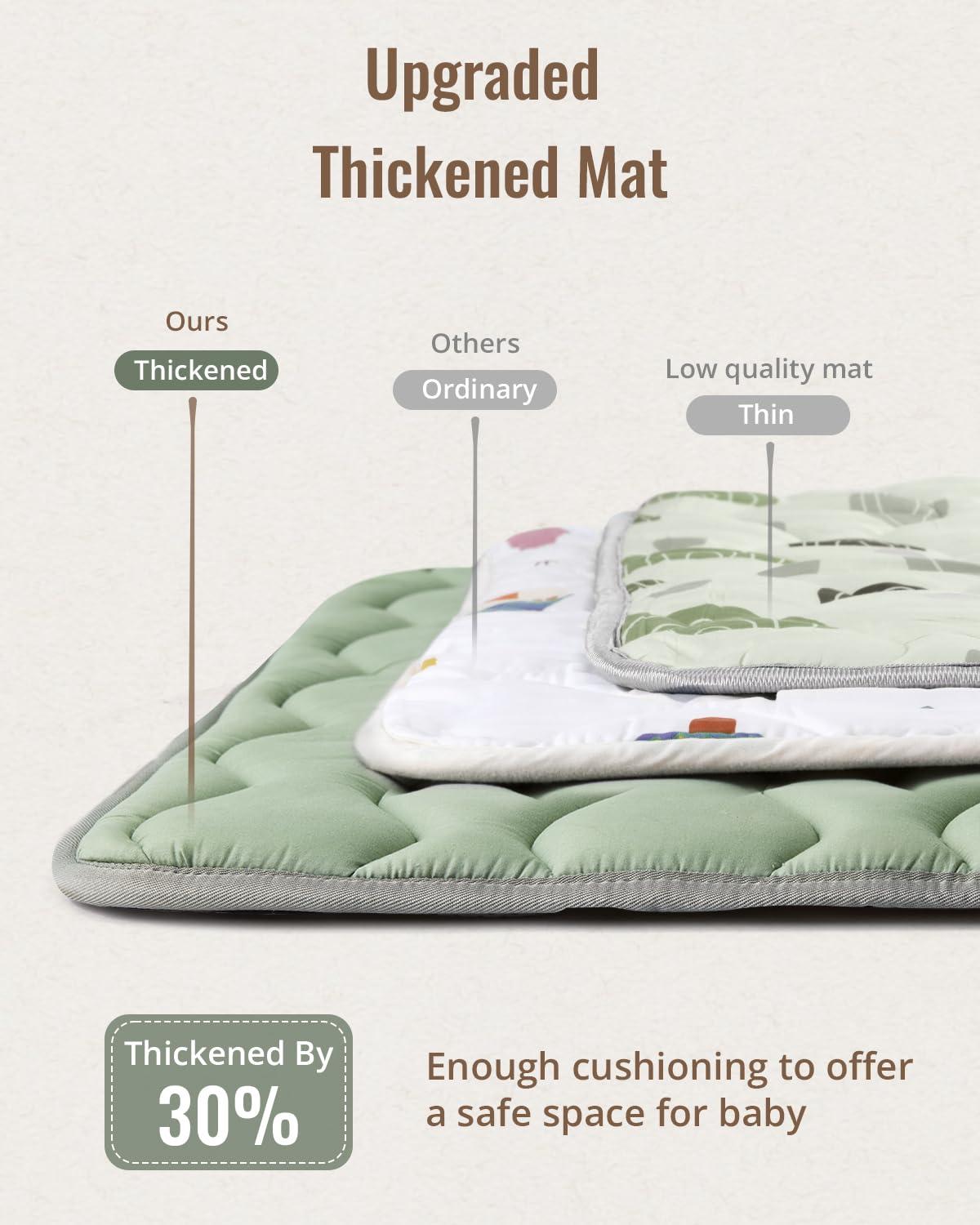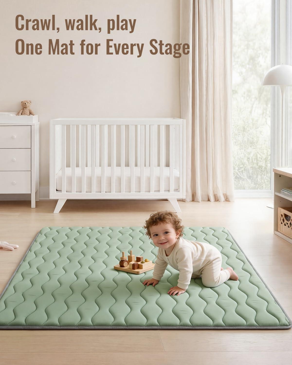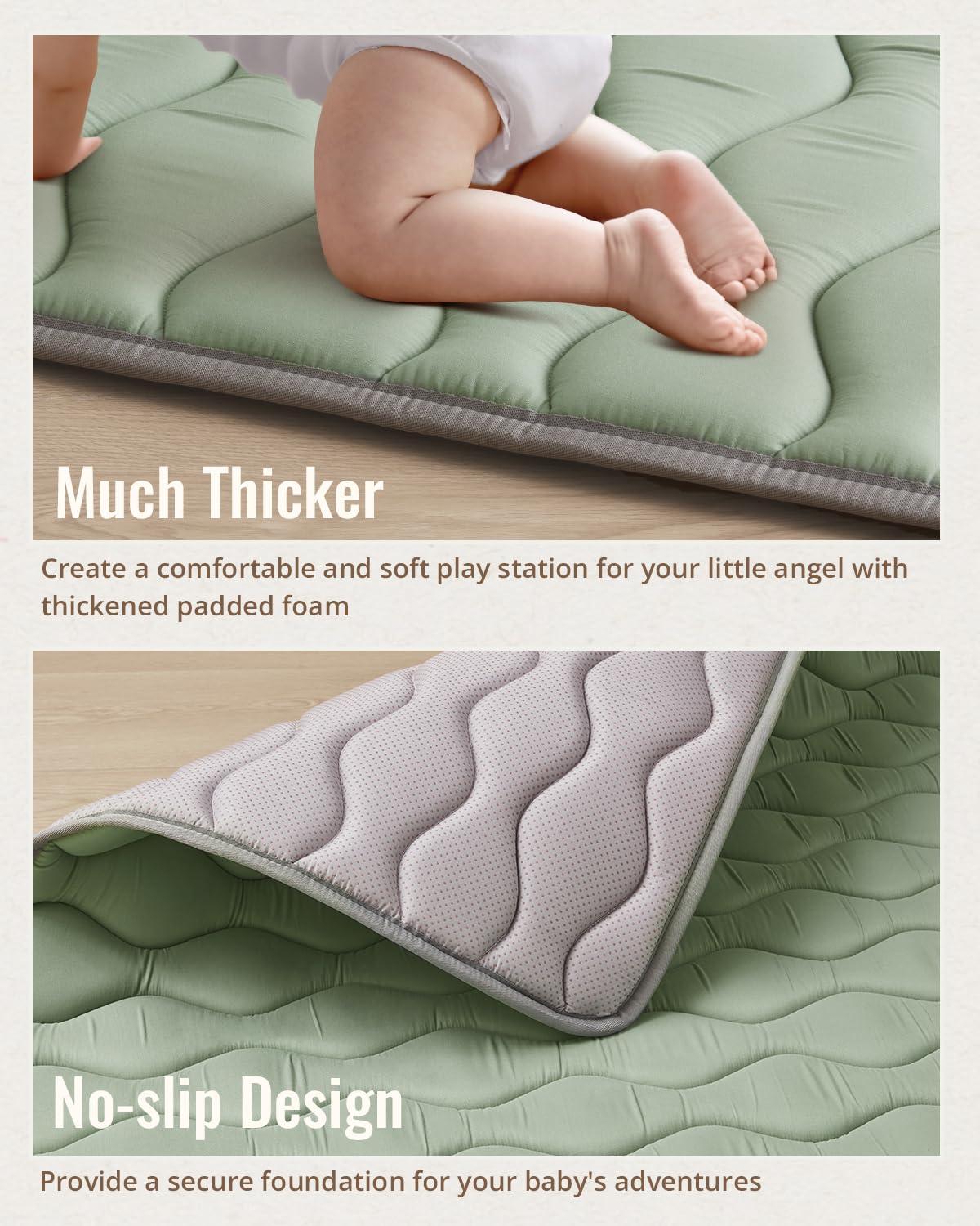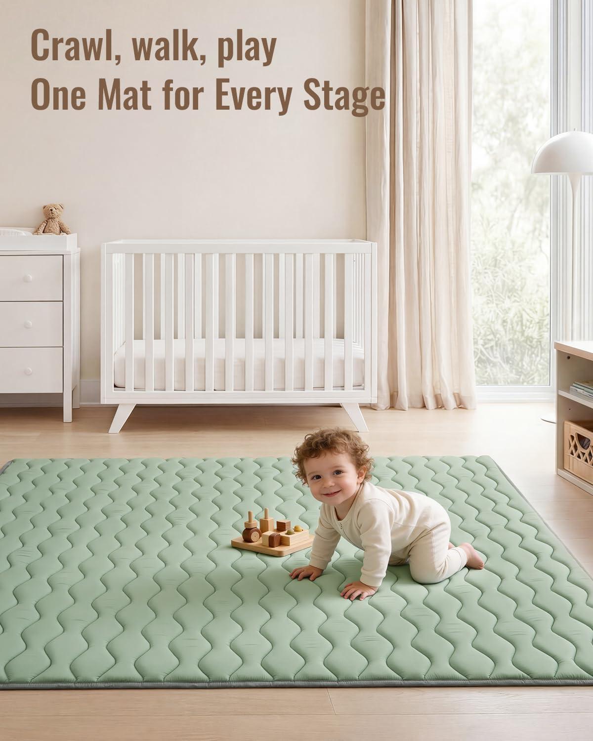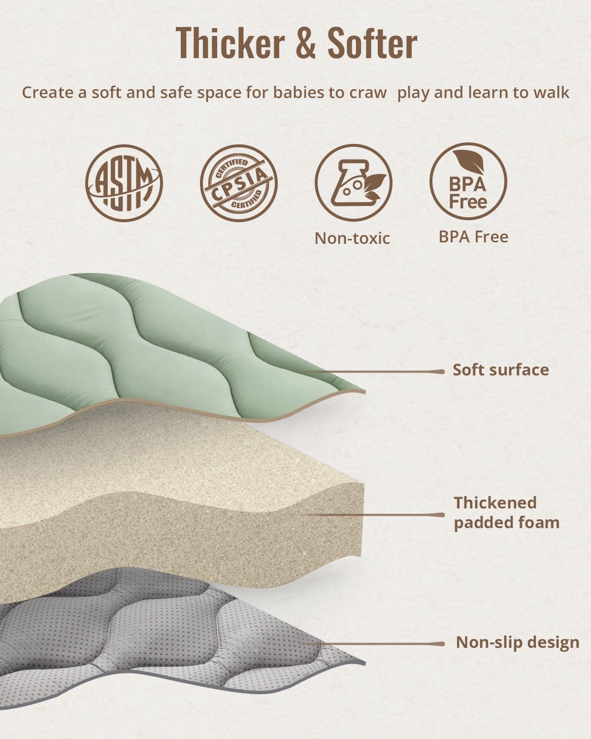 Blissful Diary Portable Baby Play Mats for Floor, Thicker Cushioned Foldable Baby Crawling Mat for Indoor Outdoor, Modern Abstract 43″ X 43″(Sage Green)
