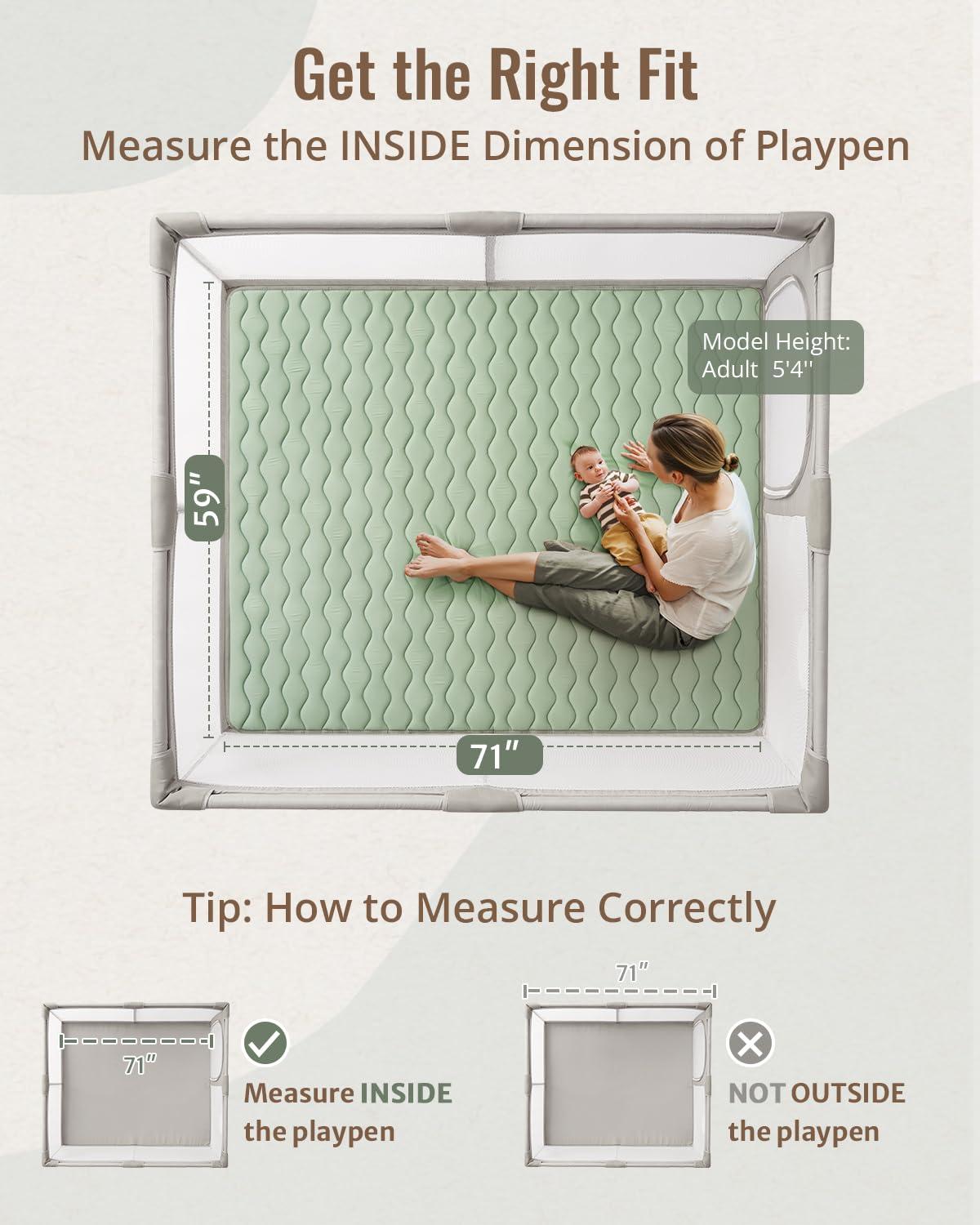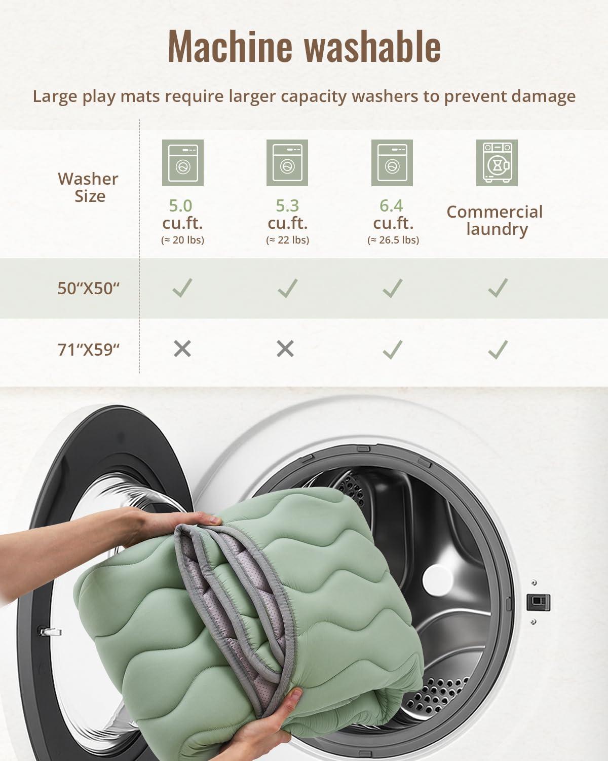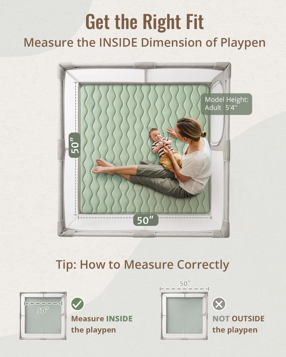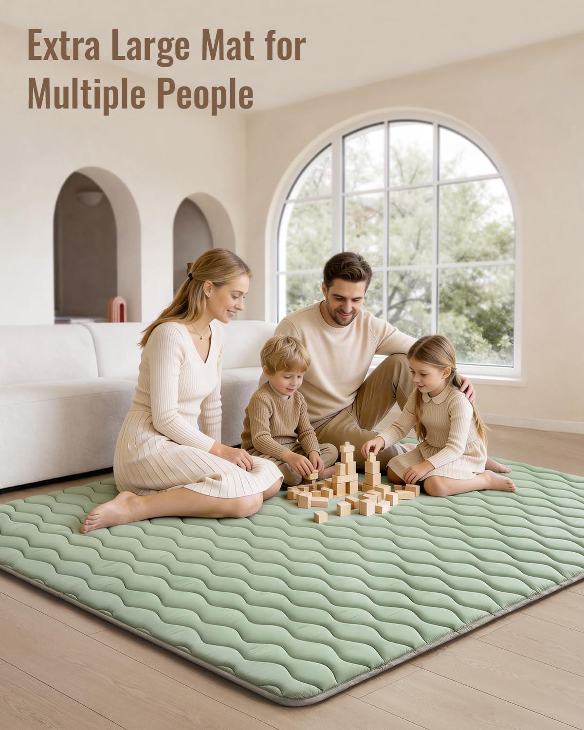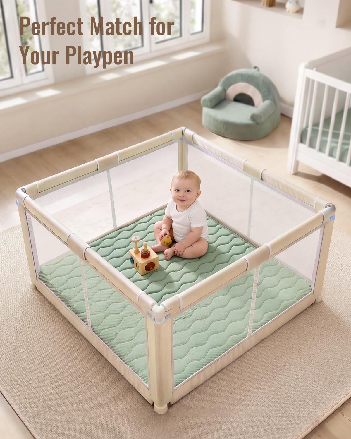 Blissful Diary Portable Baby Play Mats for Floor, Thicker Cushioned Foldable Baby Crawling Mat for Indoor Outdoor, Modern Abstract 43″ X 43″(Sage Green)