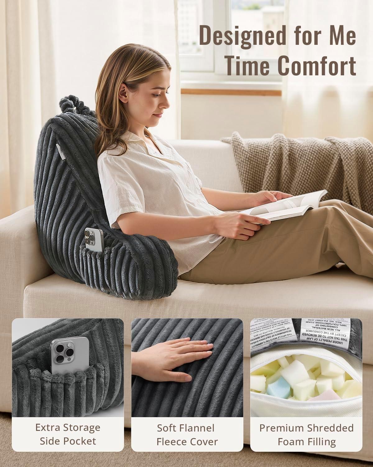 Superior Comfort: Designed for ultimate relaxation, this plush flannel fleece reading pillow supports your back, arms, and shoulders. The 11-inch arms help reduce strain, while side pockets keep essentials handy. Perfect for adults, teens, and kids.