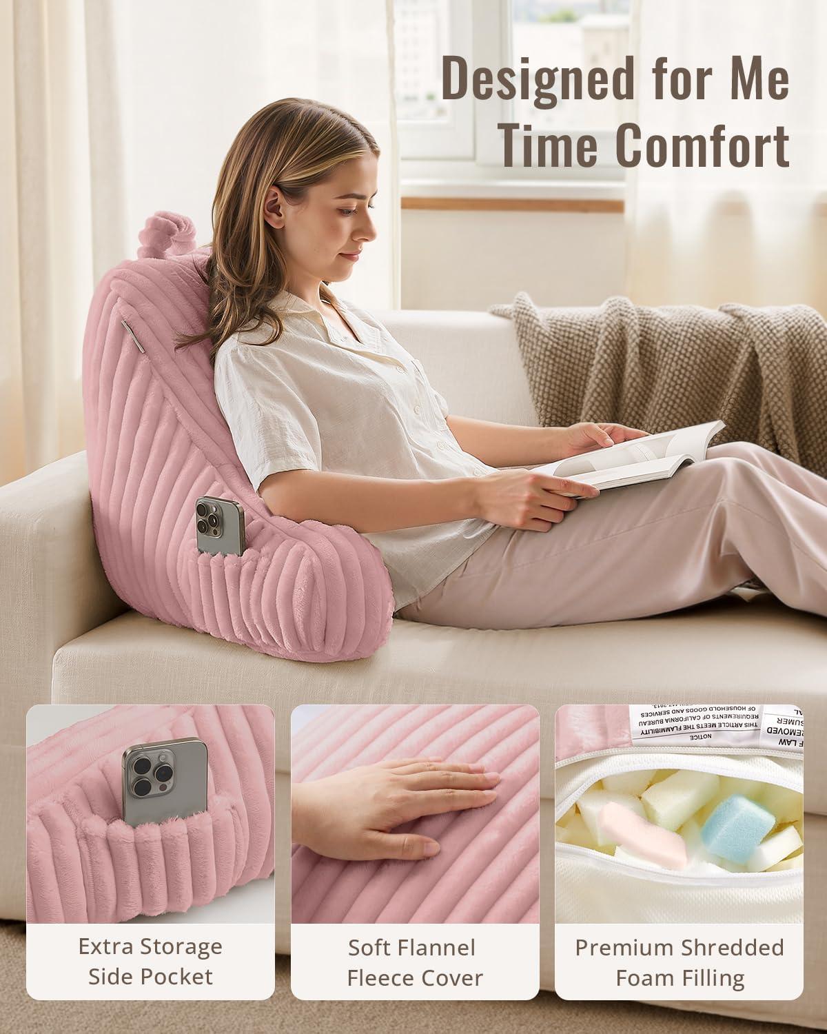 Superior Comfort: Designed for ultimate relaxation, this plush flannel fleece reading pillow supports your back, arms, and shoulders. The 11-inch arms help reduce strain, while side pockets keep essentials handy. Perfect for adults, teens, and kids.