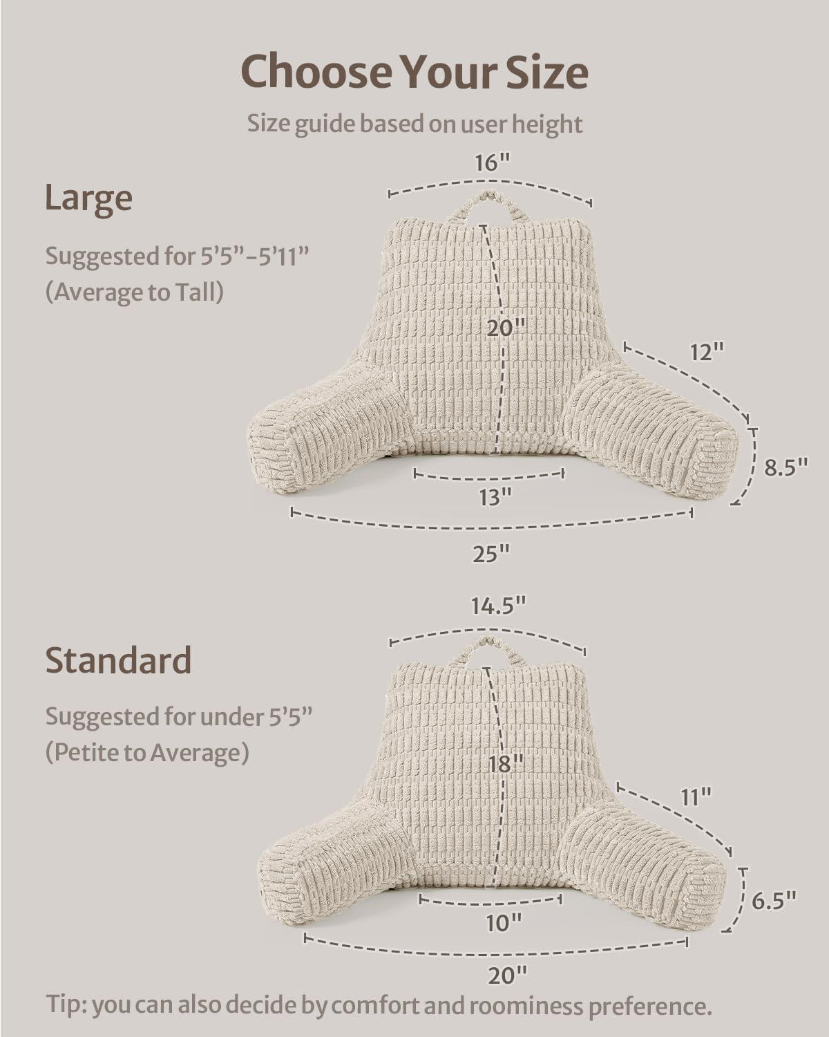 Superior Comfort: With 20-inch height and 16-inch widths to reduce joint and muscle stress, our larger-sized reading pillow offers cozy and healthy support for your back and shoulders. The side pockets keep essentials handy. Perfect for adults, teens, and kids