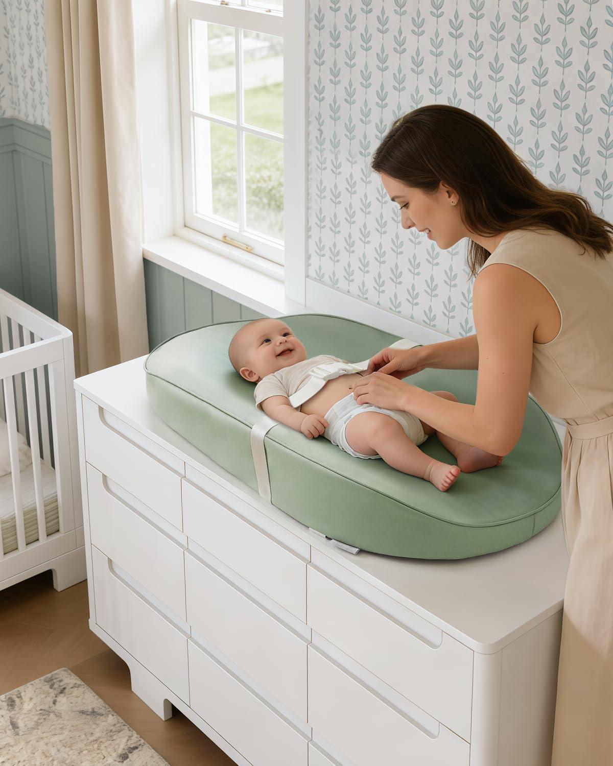 Stylish Design & Nice Gift – This light green baby changing pad infuses your nursery with a refreshing vibe, bringing the tranquility of nature to your nursery. It's the first choice for modern parents, an incomparable baby shower gift, baby birthday gift that new parents will love