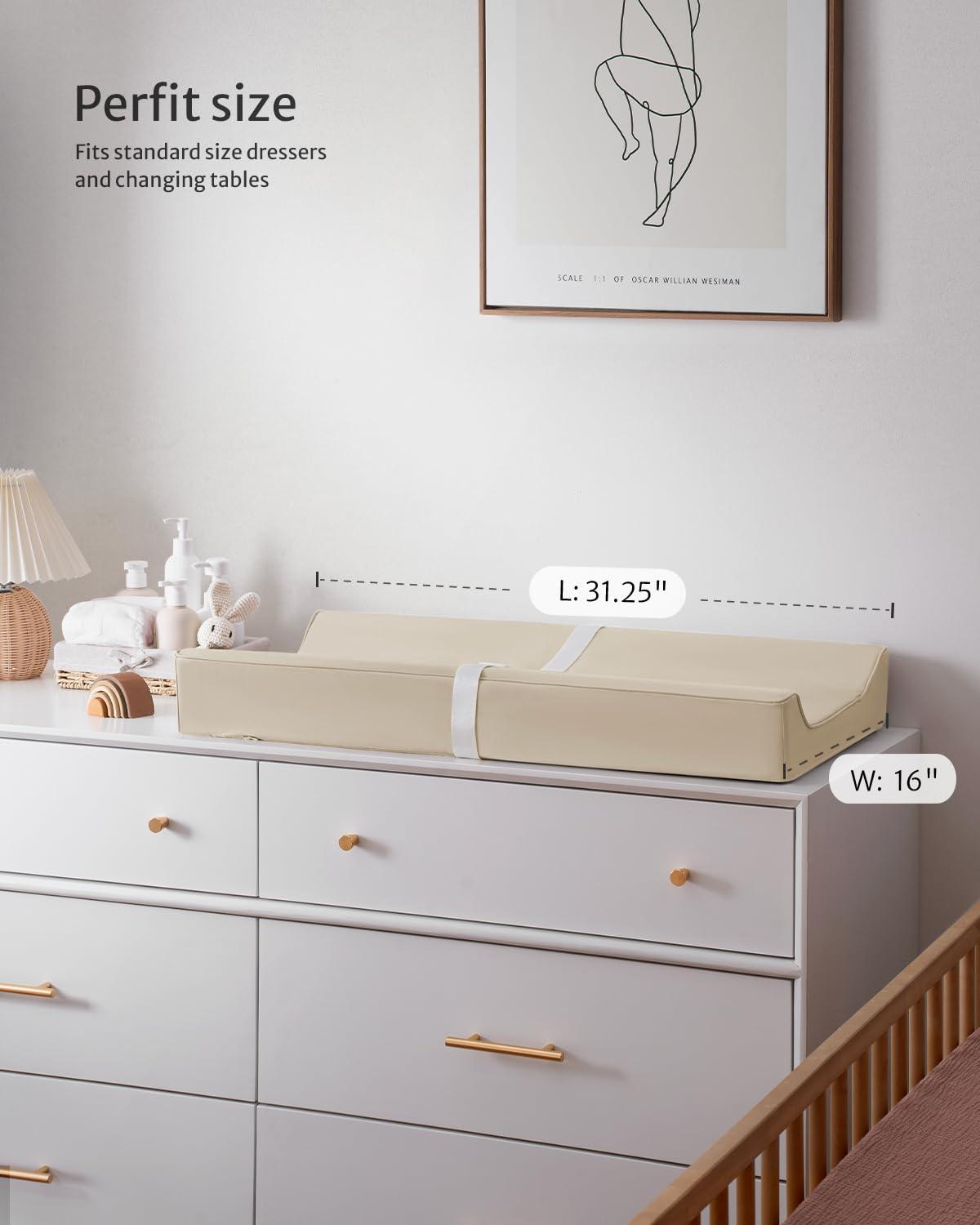 Perfect Size – The baby changing pad size at 31.25″L * 16″W * 4.25″H, fits all standard changing tables and most dressers. With lightweight styling, it's convenient for on-the-go traveling, daycare and more