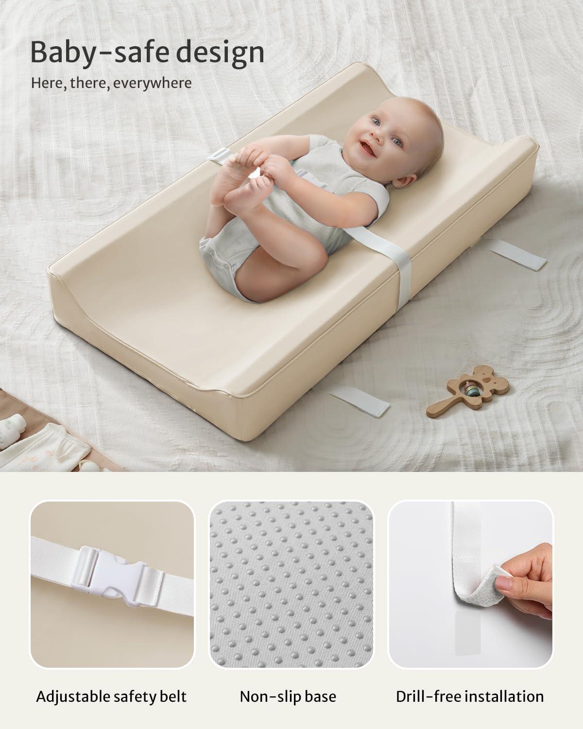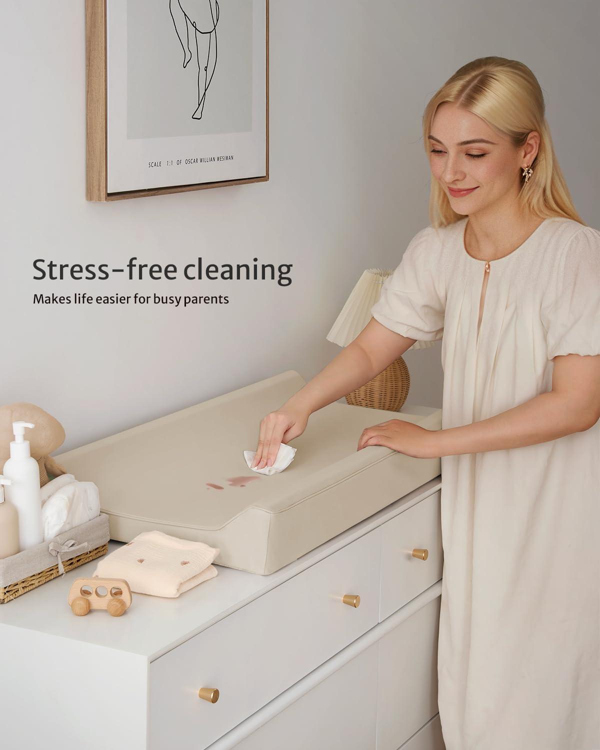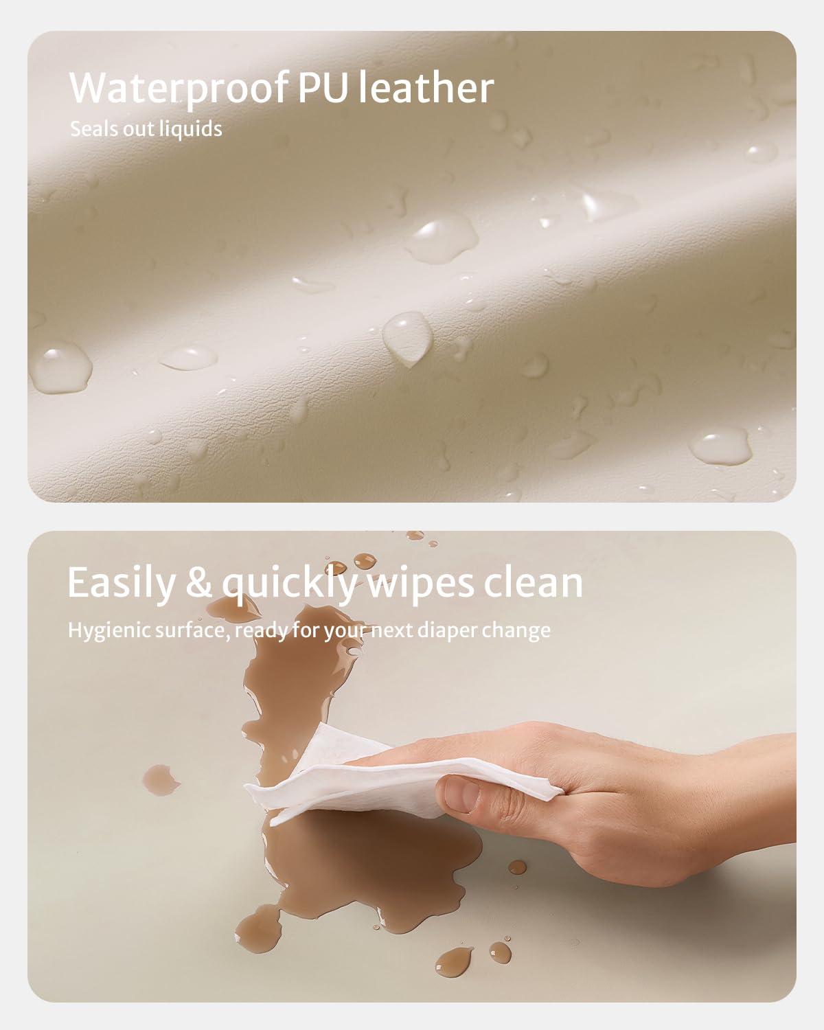 Waterproof & Wipe-clean – Unavoidable mess and frequent laundry? Oh, no worries! Our contoured changing pad features a waterproof PU surface that wipes clean in seconds, ensuring a fresh and hygienic surface for your next diaper change. Fewer cover changes and less laundry make parenting easier