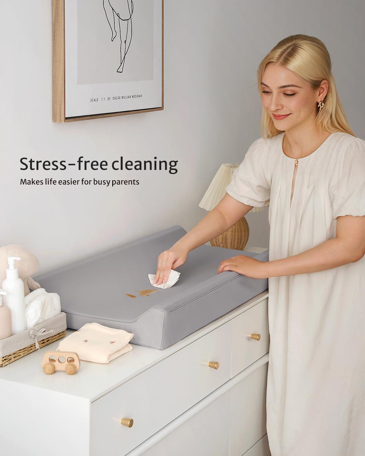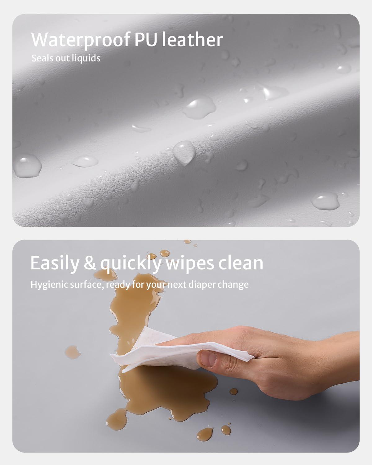 Waterproof & Wipe-clean – Unavoidable mess and frequent laundry? Oh, no worries! Our contoured changing pad features a waterproof PU surface that wipes clean in seconds, ensuring a fresh and hygienic surface for your next diaper change. Fewer cover changes and less laundry make parenting easier