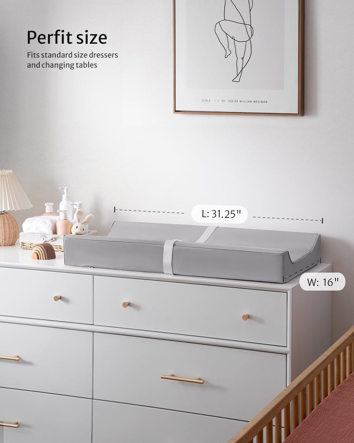Perfect Size – The baby changing pad size at 31.25″L * 16″W * 4.25″H, fits all standard changing tables and most dressers. With lightweight styling, it's convenient for on-the-go traveling, daycare and more