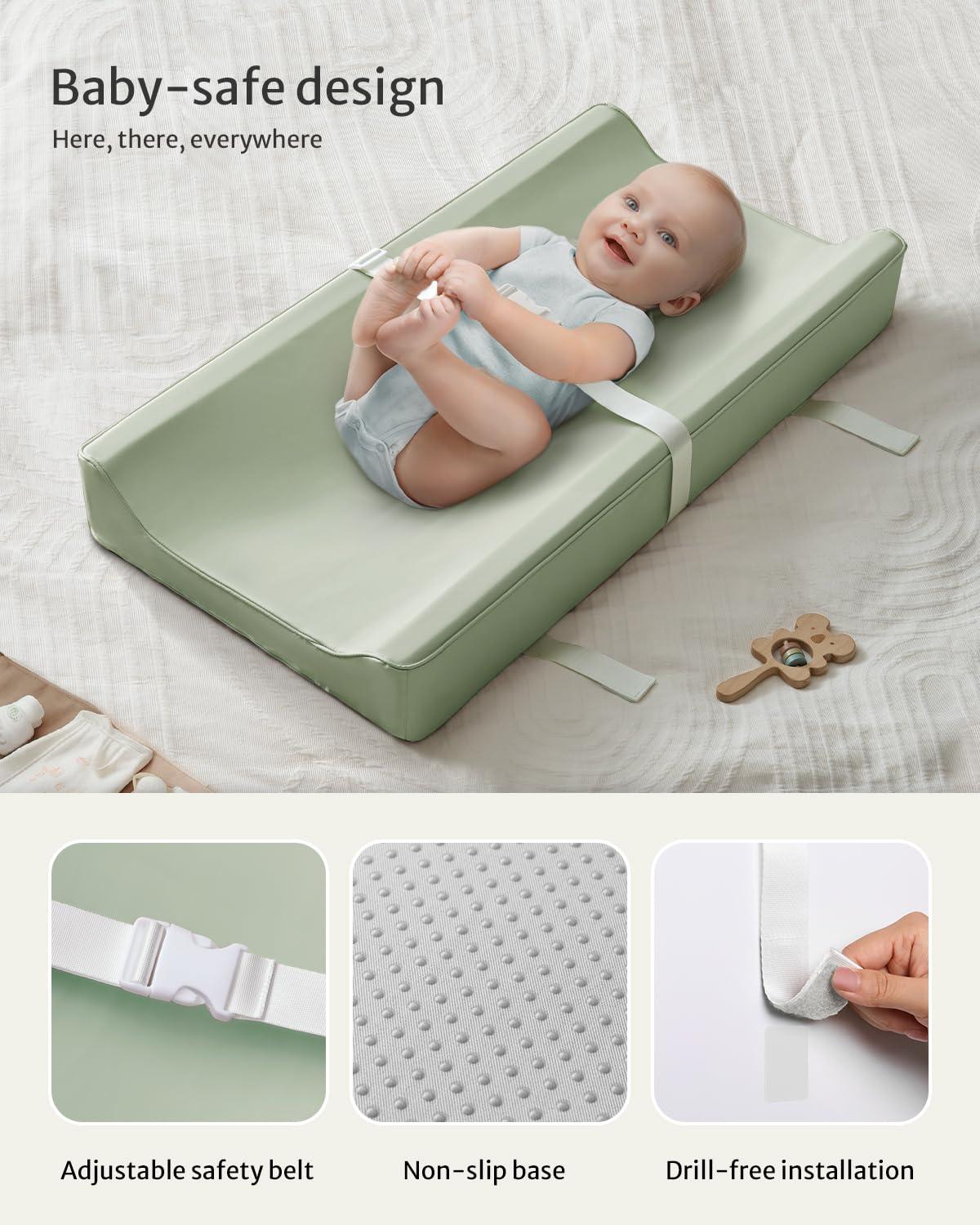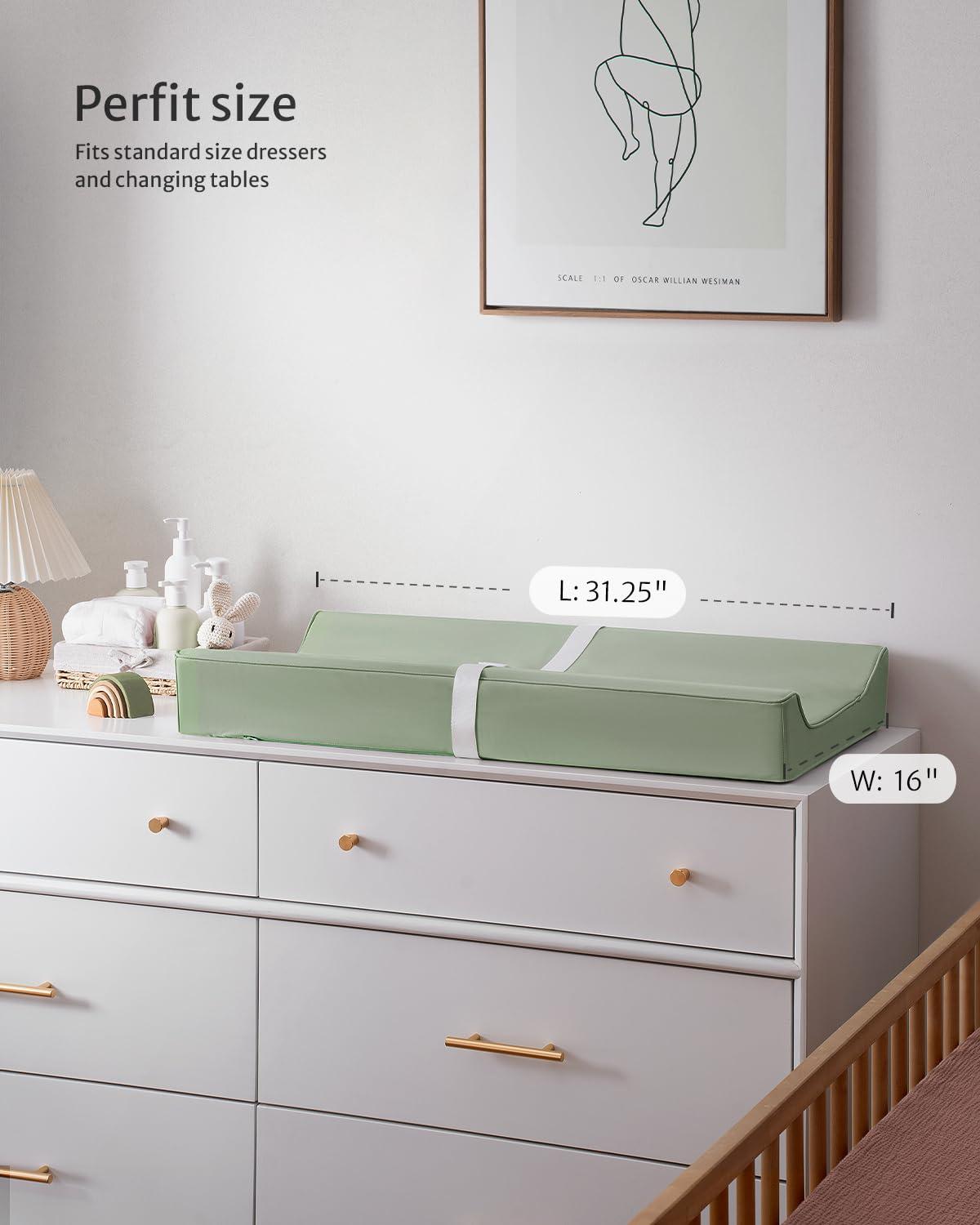 Stylish Design & Nice Gift – This light green baby changing pad infuses your nursery with a refreshing vibe, bringing the tranquility of nature to your nursery. It's the first choice for modern parents, an incomparable baby shower gift, baby birthday gift that new parents will love