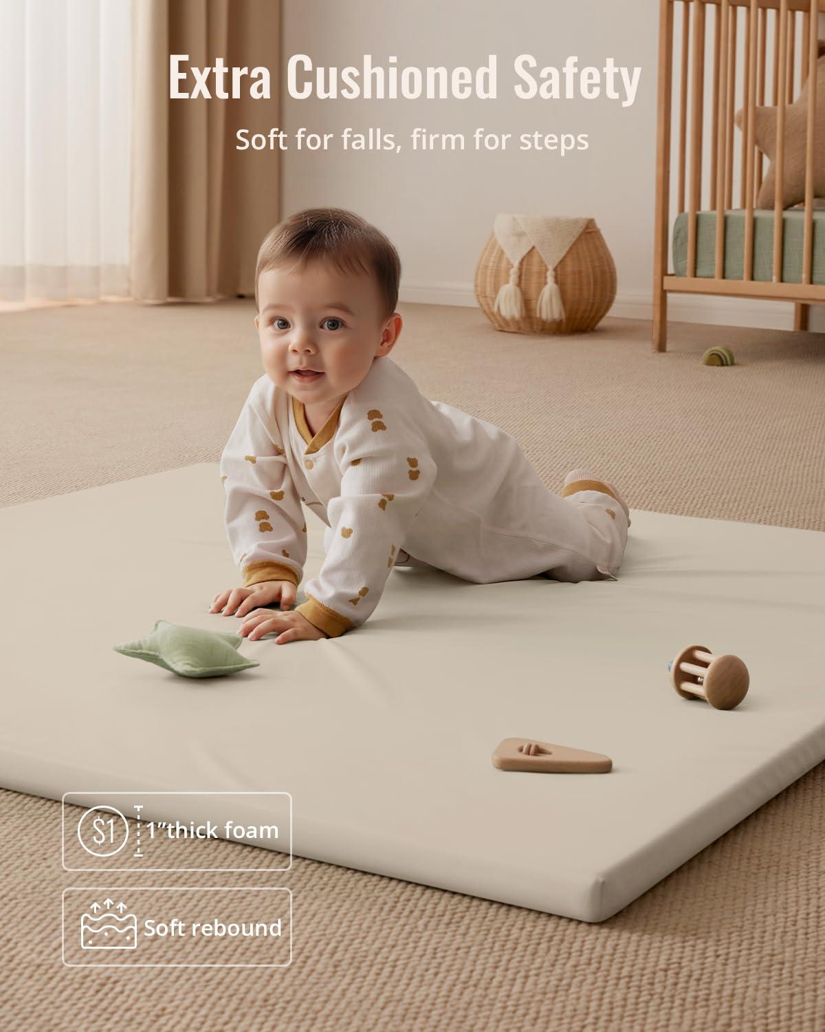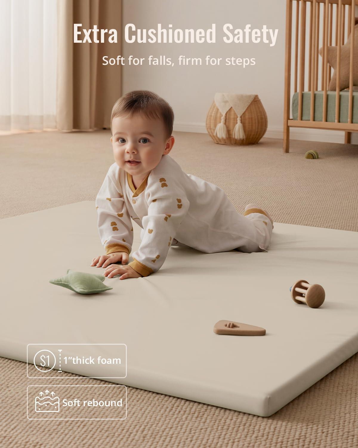 Durable Vegan Leather: The premium vegan leather surface is more durable than traditional XPE mats, resisting daily wear and tear. Our baby crawling mat keeps its stylish look while offering a reliable and long-lasting play area for your baby