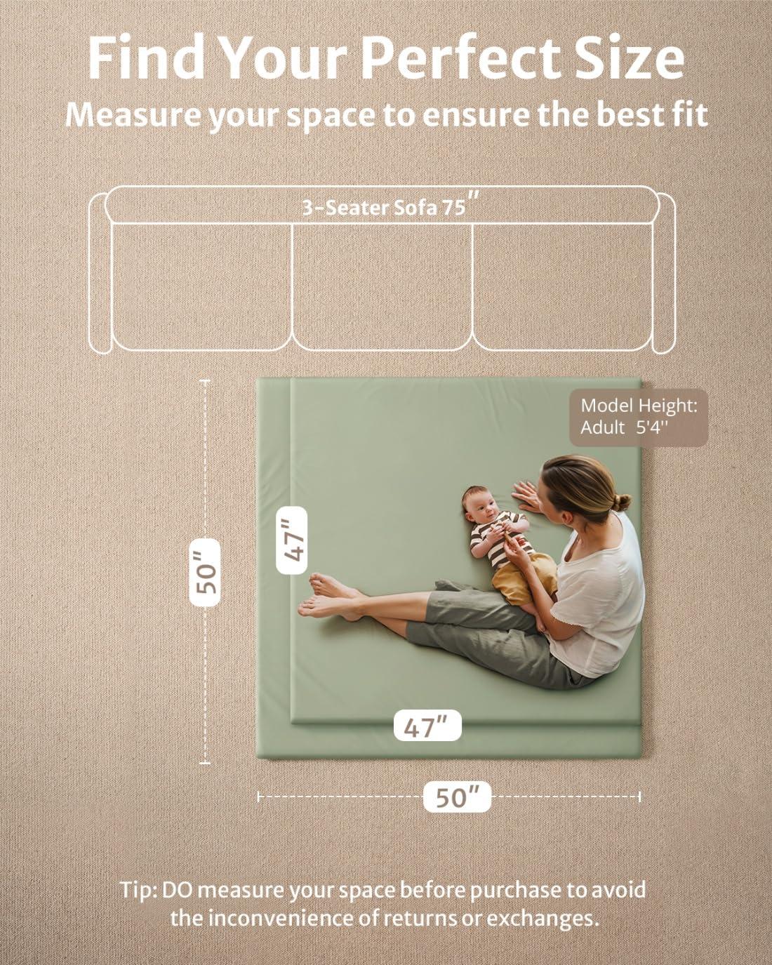 Durable Vegan Leather: The premium vegan leather surface is more durable than traditional XPE mats, resisting daily wear and tear. Our baby crawling mat keeps its stylish look while offering a reliable and long-lasting play area for your baby