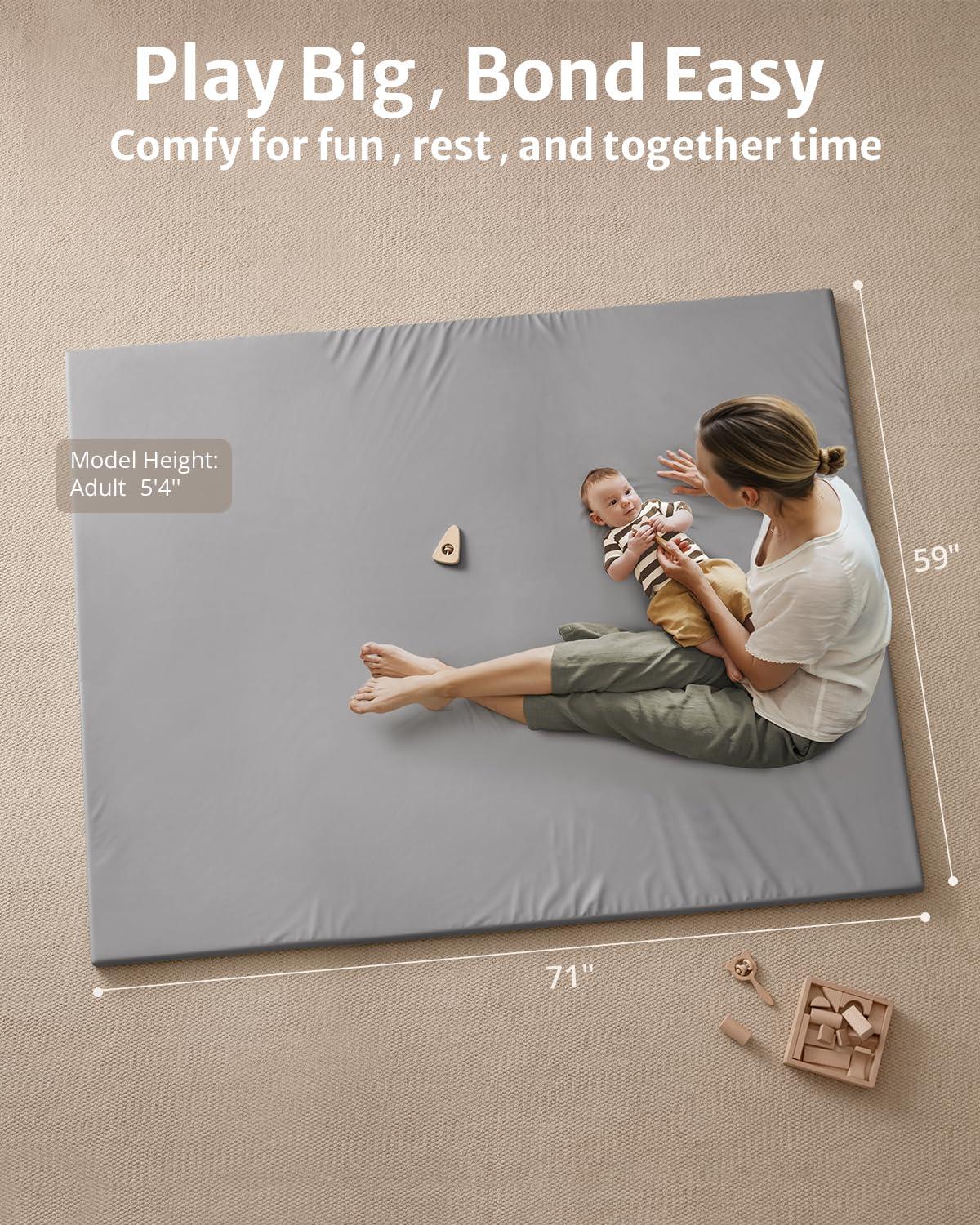 Large Size with Cushioned Support: Sized at 71″x59″, the thick foam playmat provides a spacious, soft, padded surface for crawling, playing, or bonding. It ensures great protection from hard floors, helping to prevent bumps and falls