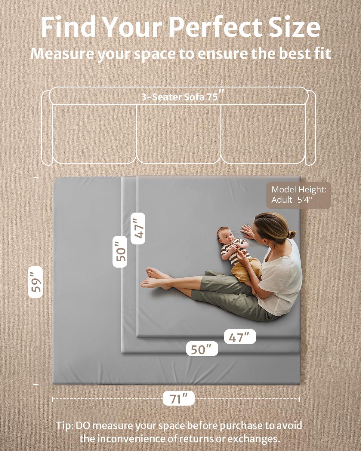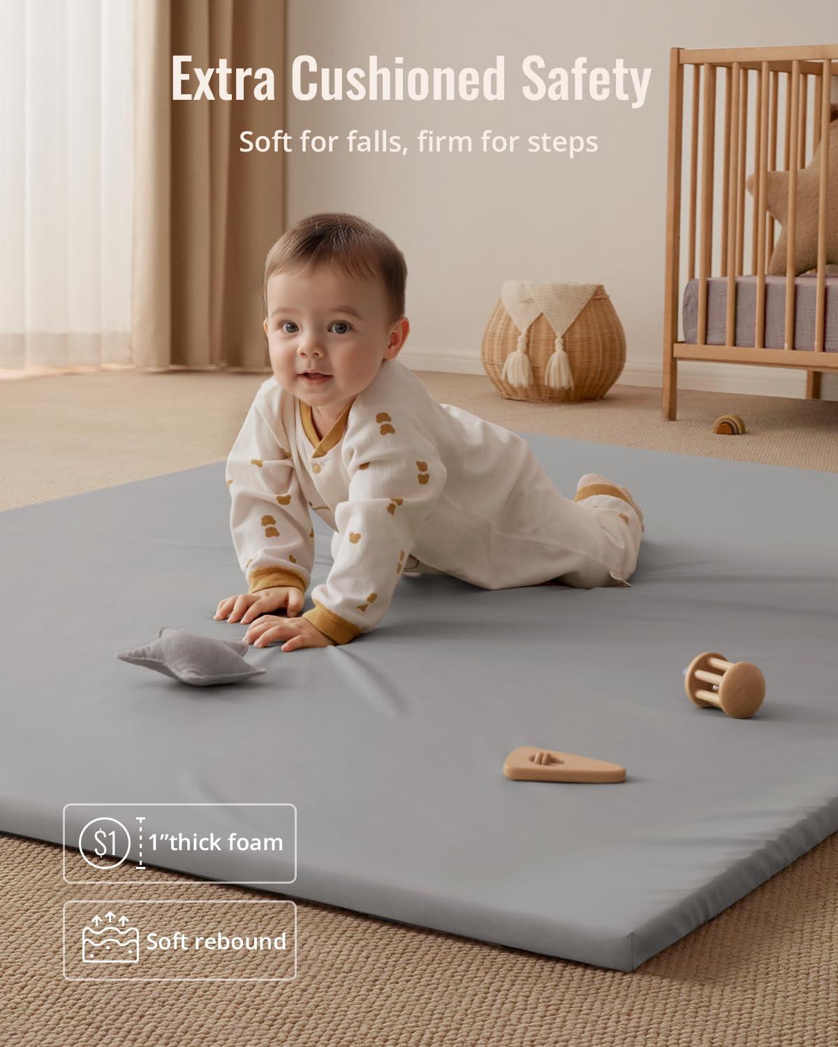 Perfect Fit & Stylish Decor: Our foam playmat fits seamlessly in any space, from the living room to the nursery. The light gray color and simple design suit any decor, creating a chic, functional play space for your little one